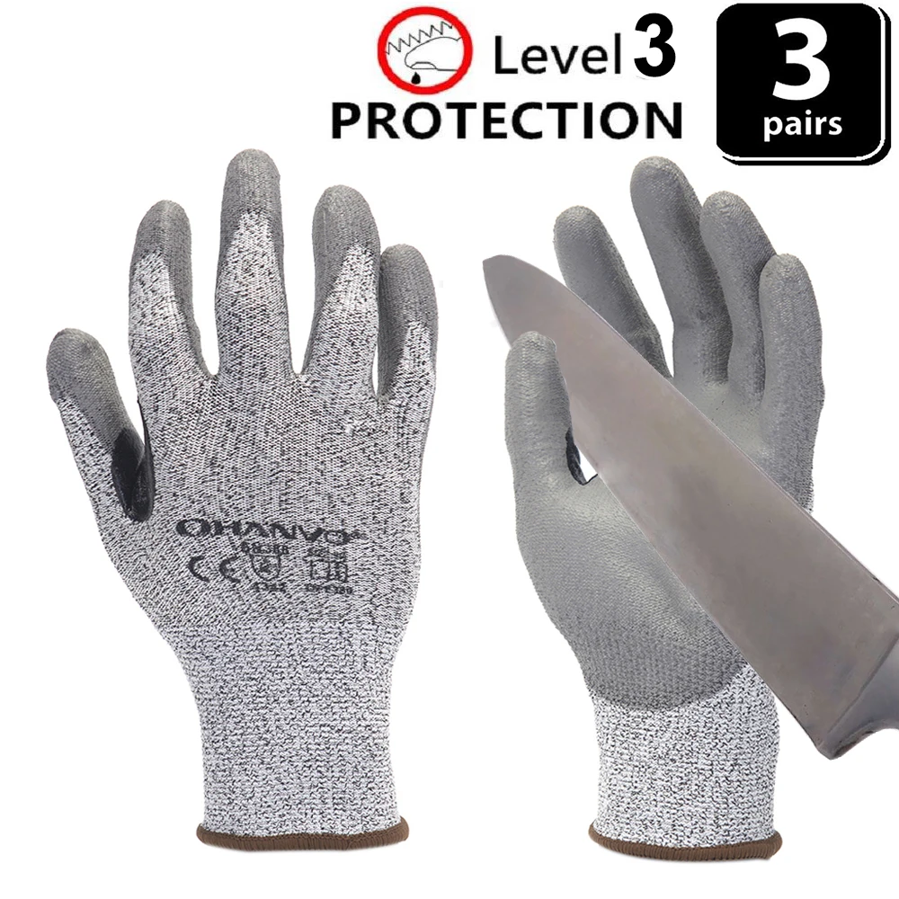 Защитные рабочие перчатки Hanvo, 3 пары, 13 калибр, HPPE, серый полиуретан с покрытием ладонью