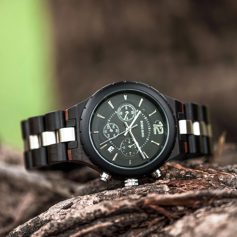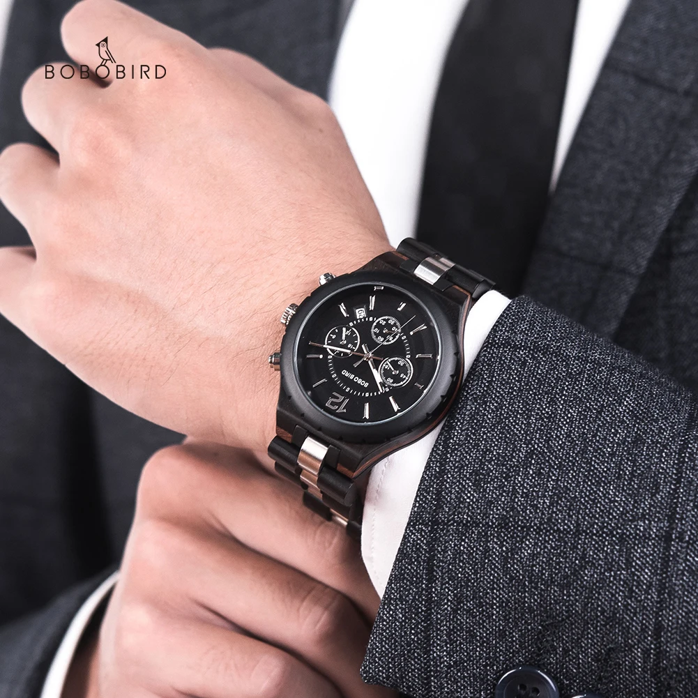 Мужские часы BOBO BIRD на заказ, деревянные роскошные часы с хроног...