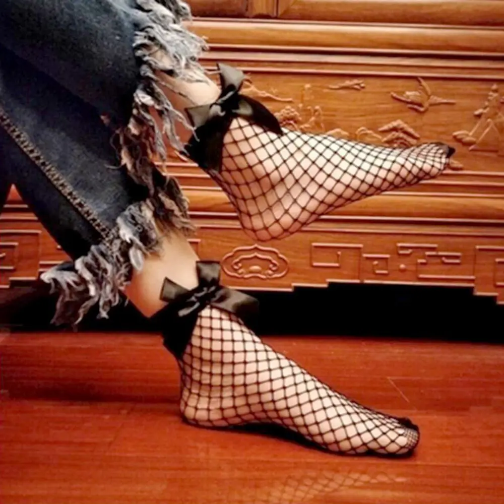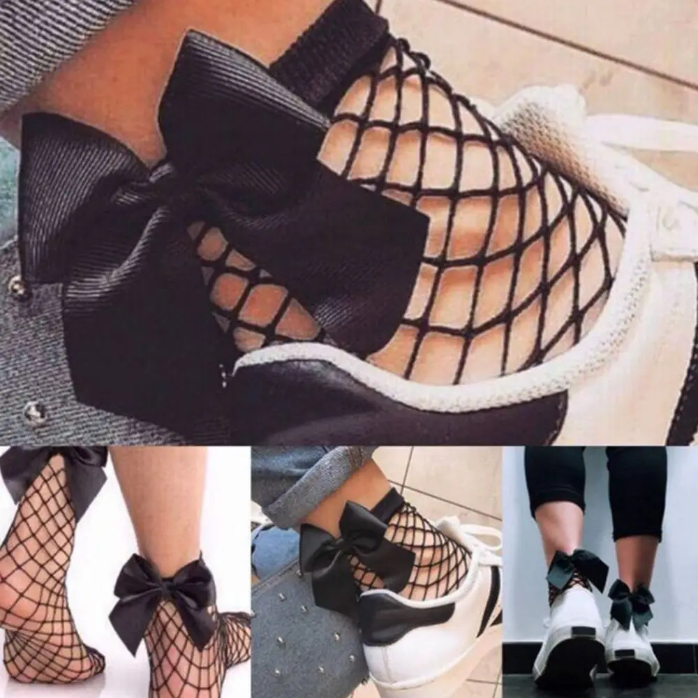 2020 модные элегантные ажурные короткие носки с рюшами и бантом, летние кружевные носки до щиколотки, сексуальные черные сетчатые носки, Прямая поставка, новое поступление