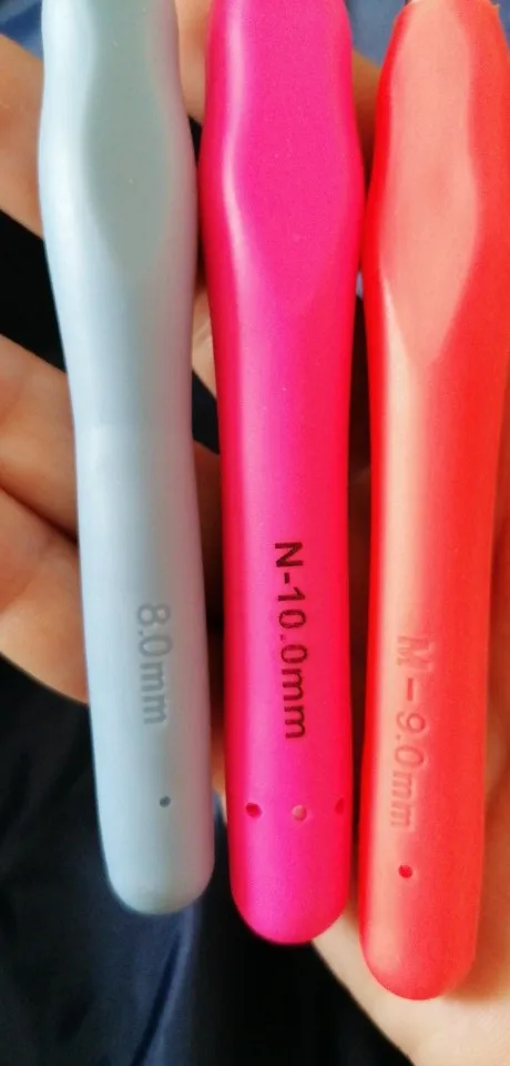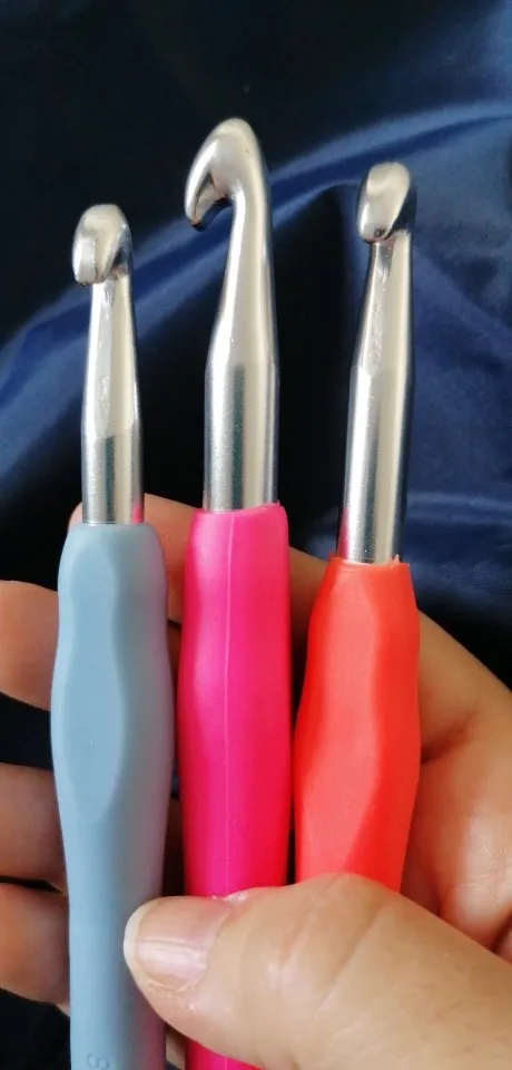 Расстроена полученными крючками. На фото все блестят, как стальные, а прислали 3 штуки самые маленькие размеры стальные, а 5 штук алюминиевые. Искала и хотела стальные. Ручки прорезиненные, приятные на ощупь, яркие симпатичные. У крючка 4 мм ручка крупнее остальных. Стержень почти на всю длину ручки. Есть шероховатости на крючках, но это не критично, при вязании ниткой полируются со временем. Доставка чуть больше месяца. В целом неплохие крючки, но хотела стальные ((((