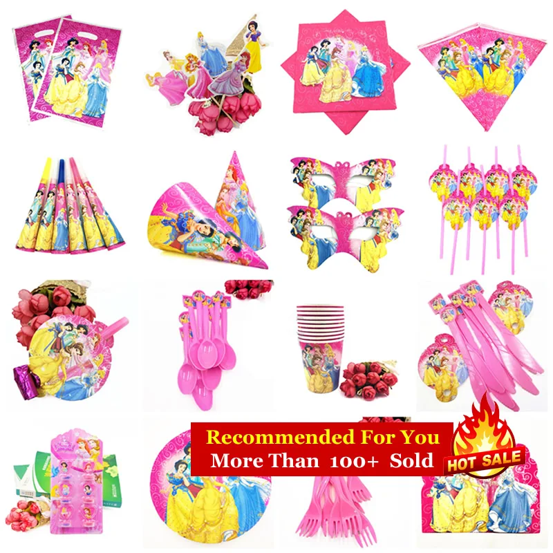 Шесть Принцесса Тема партии попкорн салфетки для стаканчиков тарелки скатерть поставки ножи и вилки ложки День рождения украшения