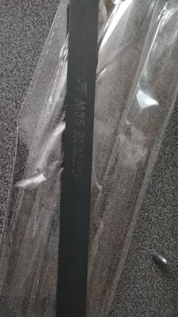 Пластина пришла достаточно быстро. Геометрия нарушена - пластина выгнута около 0,5мм на 20см. и не прямоугольная, а трапецией. Твердость в описании завышена - стекло царапает, но резец из Р18 на 63HRC не берет. Поверхность покрыта черным воронением, в масле. Снял звезду за выгнутость и трапецию. Если эти параметры не принципиальны, то железяка крепкая (каленая) - на резец сгодится.