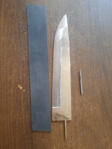 заявленная твердость явно преувеличена. реальная примерно 62-63 HRC. срезы торцов- косые, длинна 196мм. при ударе ребром не скалывается. похоже, для ножа пойдет.