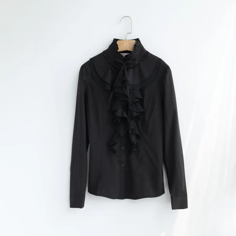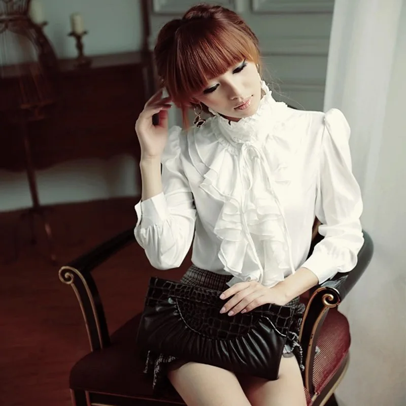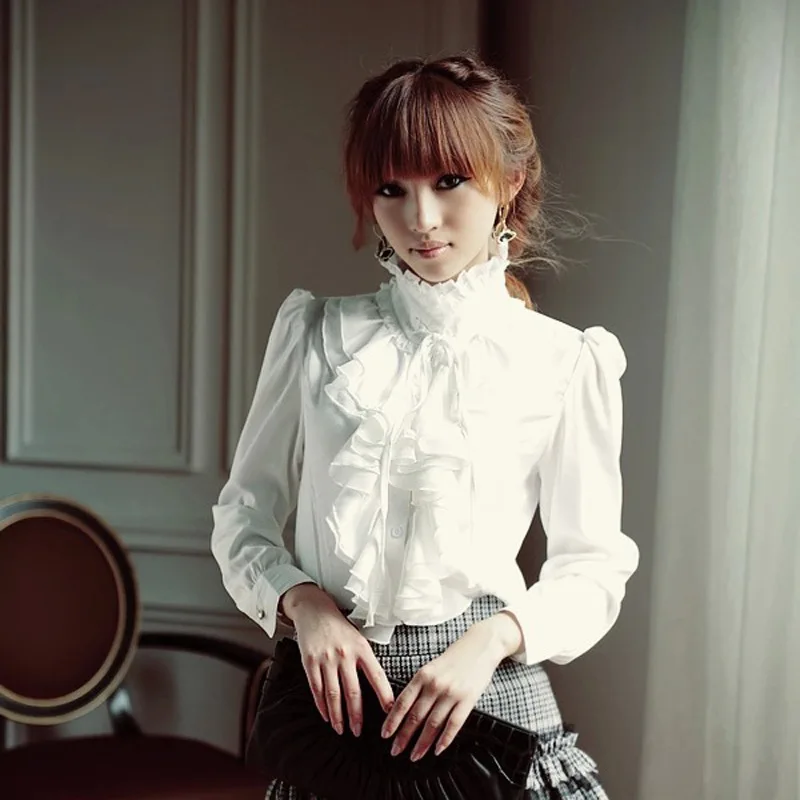 Softu для женщин Футболка Блузка оборками воротник кружево шифон OL Стиль Белый Черный с длинным рукавом повседневное свободные рубашки для мальч