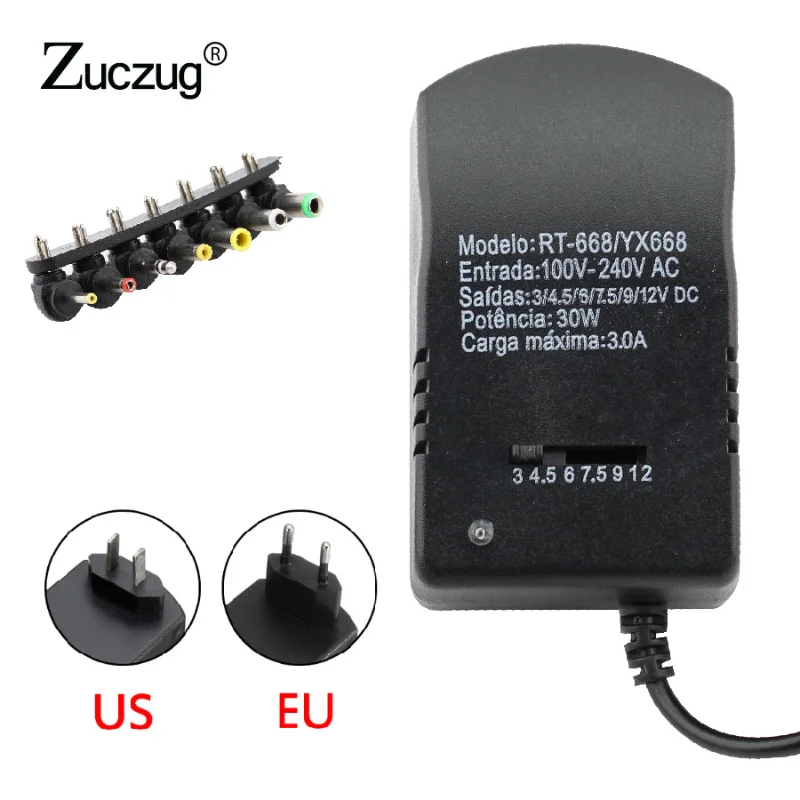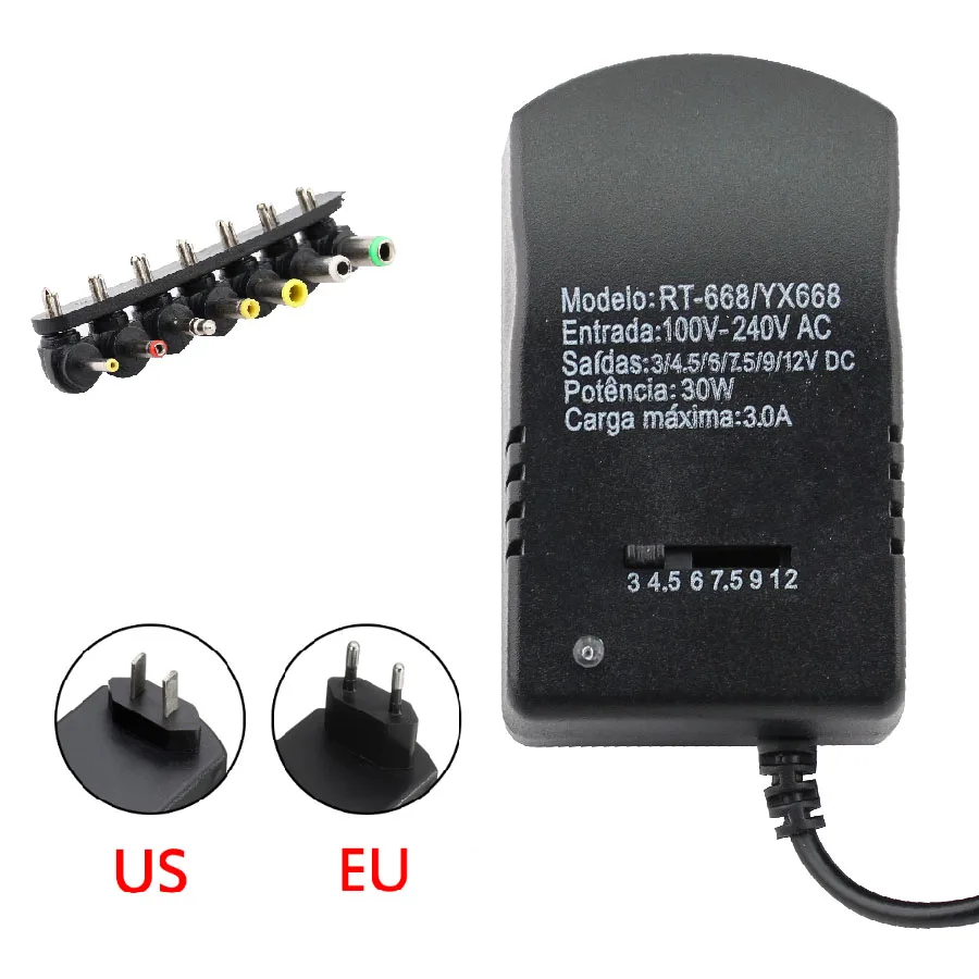 Универсальный адаптер питания, регулируемый, 3 в, 4,5 в, 6 в, 7,5 в, 9 В, 12 В, 7 вилок, 30 Вт