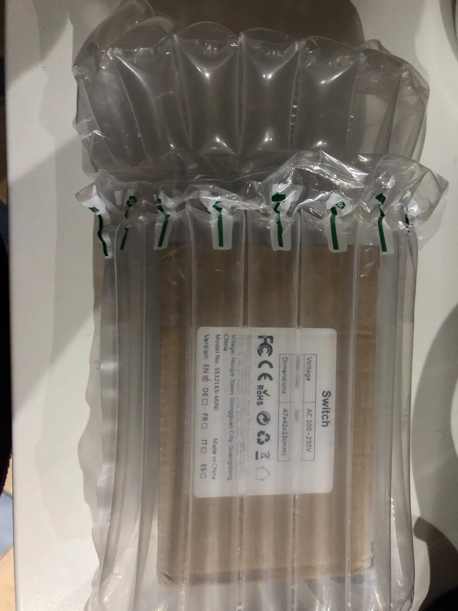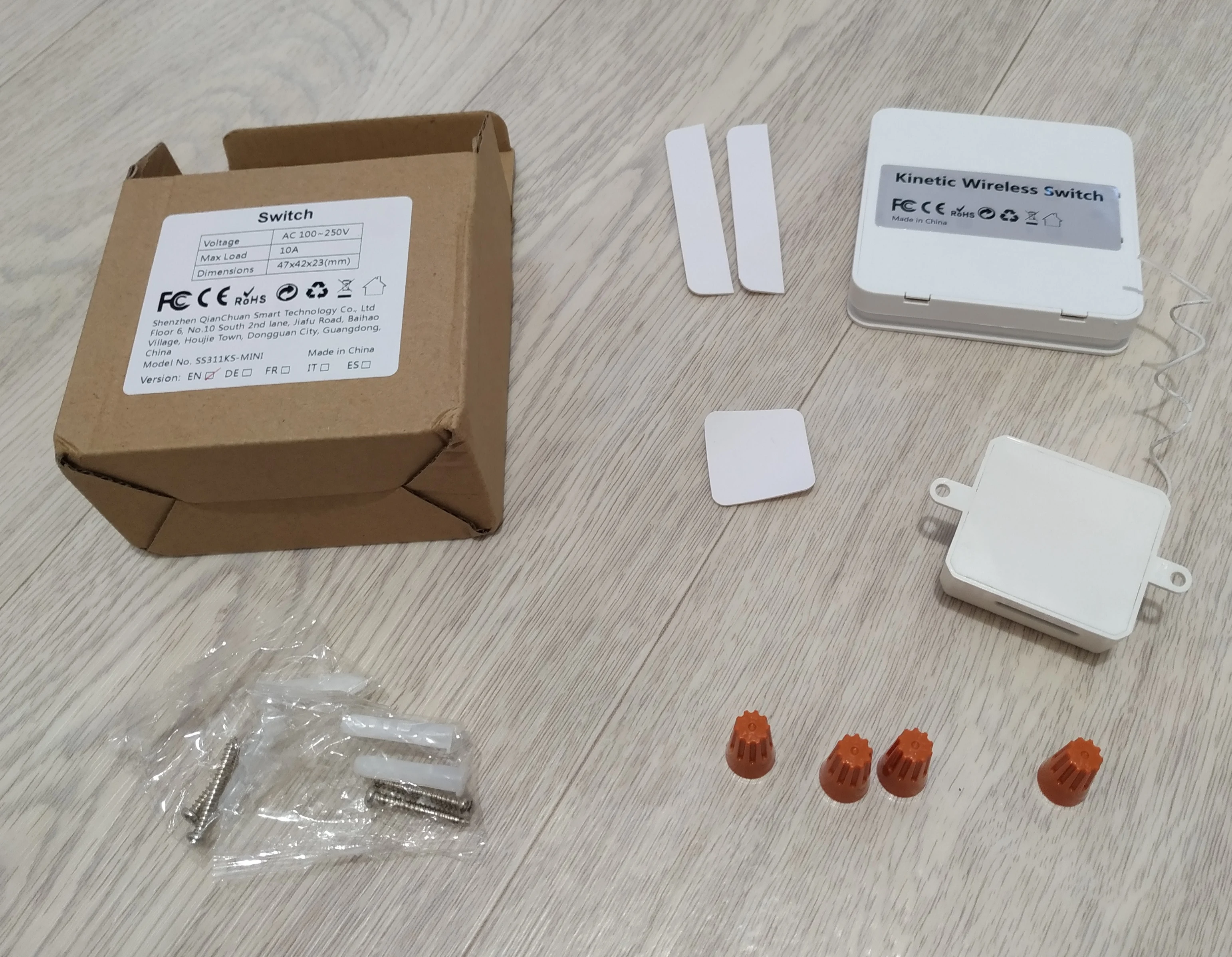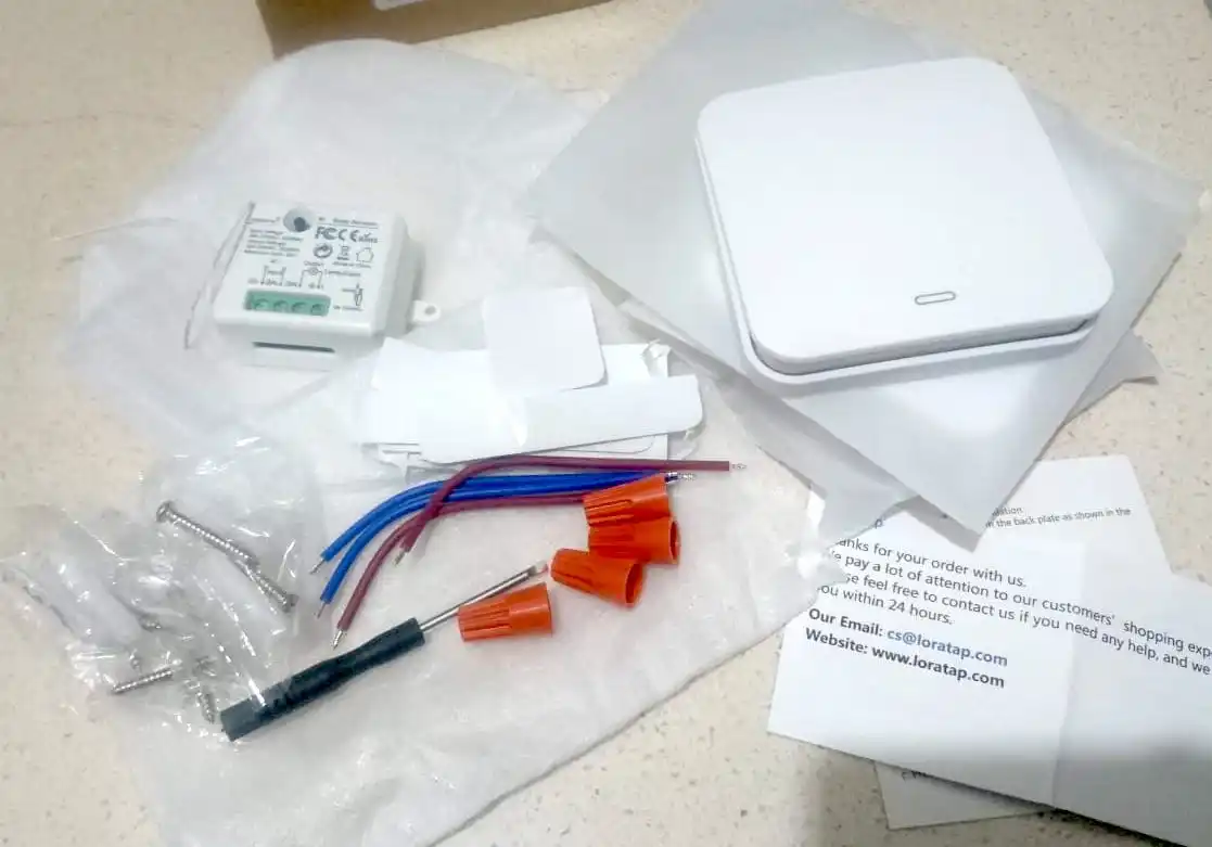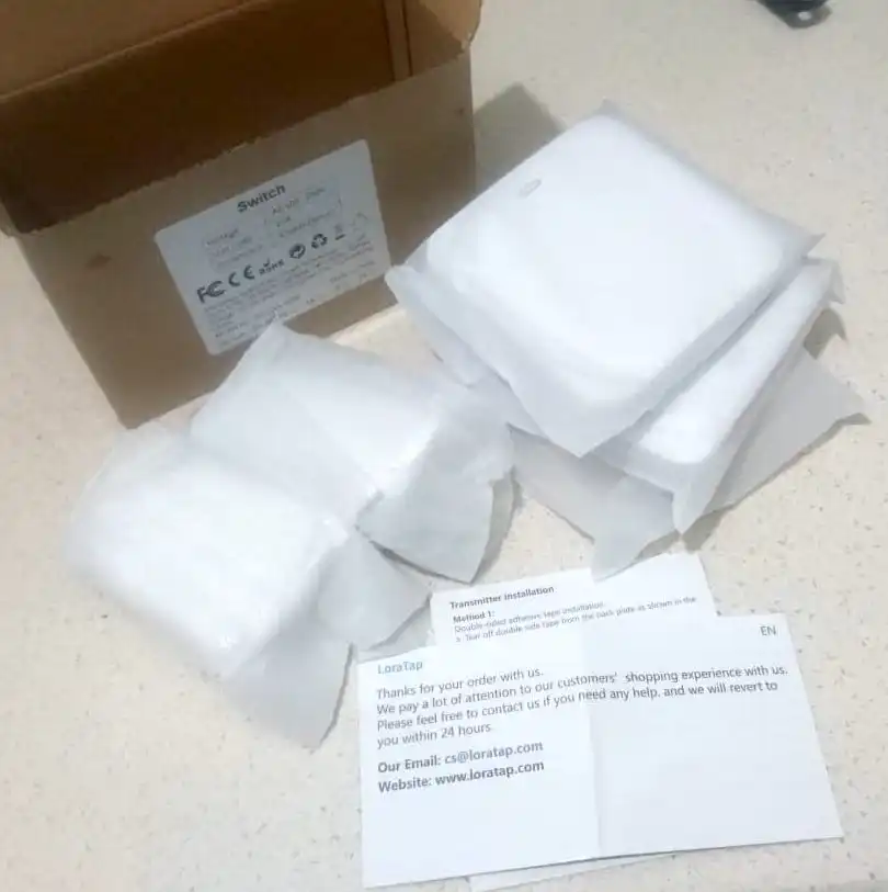 Упаковка хорошая. В работе пока не проверял. Судя по конструкции, сам блок выключателя обходится без батарейки и работает за счет энергии, созданной во время нажатия клавиши.