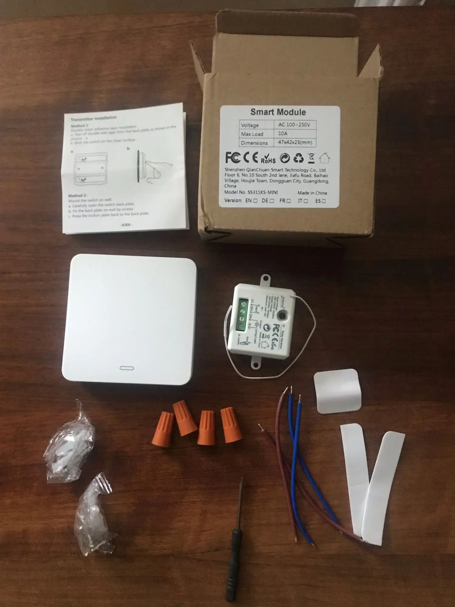 Кнопка и реле-приёмник соответствуют описанию. В комплекте-мелочи для монтажа (провода, скотч, крепёж и даже отвертка). Инструкция на английском. Все аккуратно упаковано-молодец производитель. Продавец упаковал в толстую пупырей и быстро отправил. Товар получил за полторы недели-очень быстро. В целом, заказом очень доволен, продавца рекомендую.