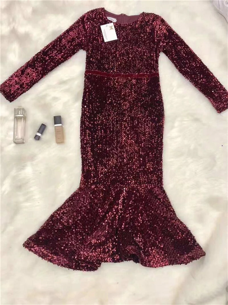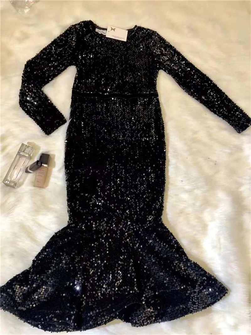 Женское блестящее платье с длинным рукавом, модельное винтажное праздничное платье-русалка, привлекательные платья средней длины, летние платья для женщин, новинка 2019