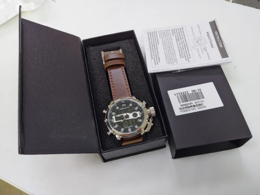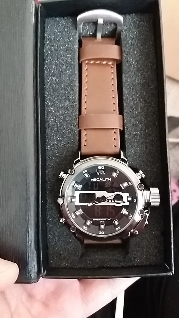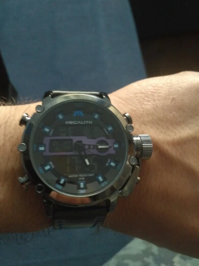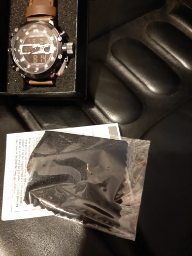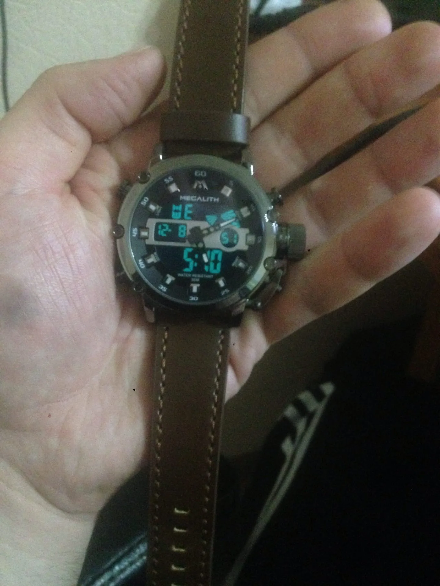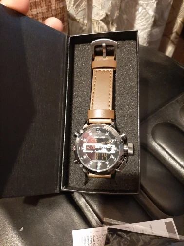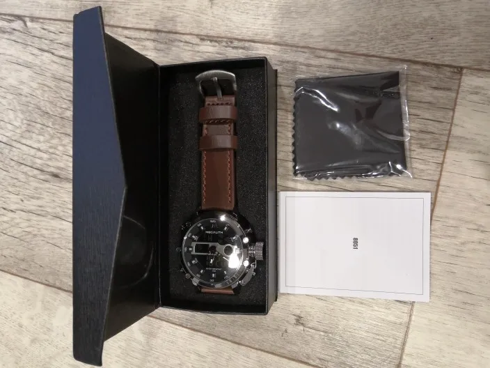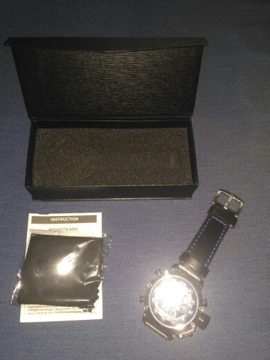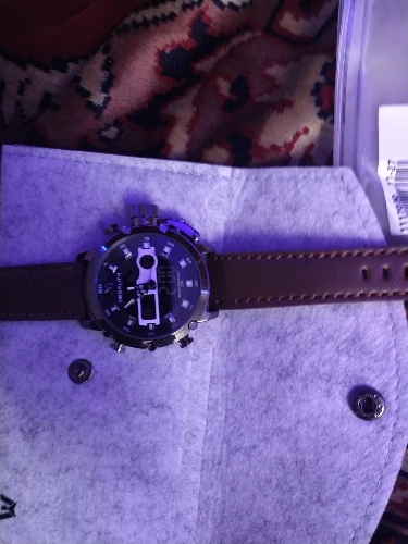 Часы получил довольно быстро. Выглядят на 5 из 5. Стрелки и цифры в темноте светятся. Экран при нажатии кнопки "Подсветка" подсвечивается. С будильником не разобрался- либо я чего то не понимаю, либо есть косяк. Но лично мне это не критично. В дальнейшем надеюсь разберусь. Ремешок на мой взгляд хлипковат для таких котлов. Не в плане надежности-тут сомнений нет, что крепкий, а в плане визуальных пропорций. Котлы большие, а ремешок тонкий и узковат. В дальнейшем наверное поменяю на какой нибудь более солидный, может быть из паракорда. Обещанной коробки не было- часы были упакованы в пакет и в сумочку. В комплекте салфетка для чистки. На экране часов написано водостойкие до 30 метров глубины .Но в паспорте указано, что выдерживают только пот и капли дождя. Нельзя погружать в воду , принимать в них душ и плавать. В принципе от часов за такую стоимость я другого и не ждал. В общем покупкой доволен.