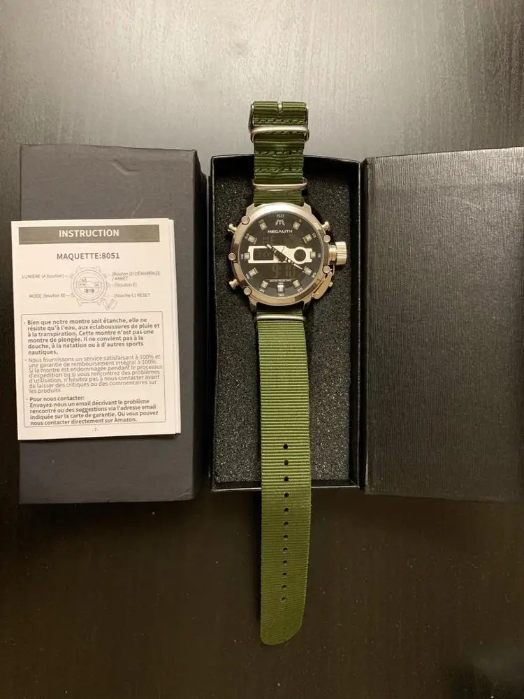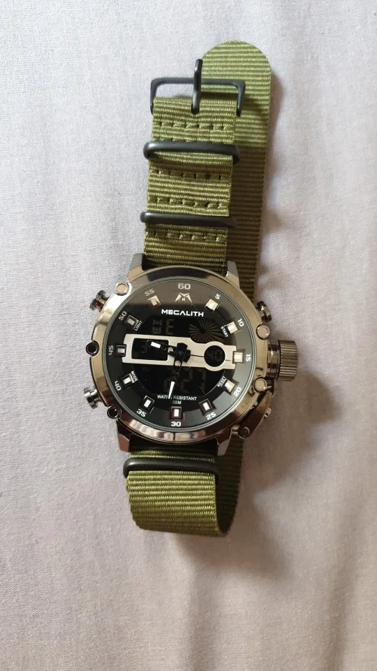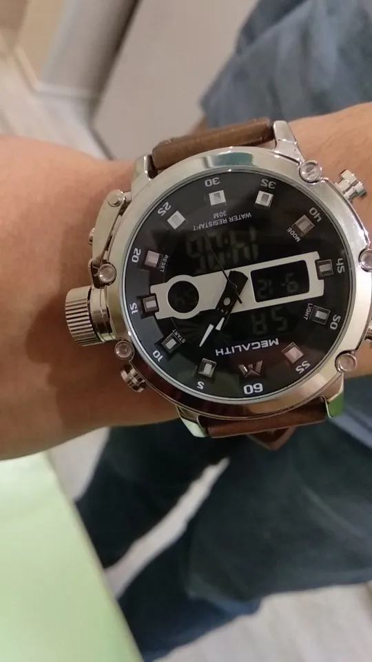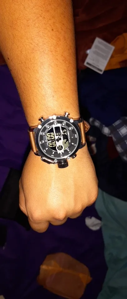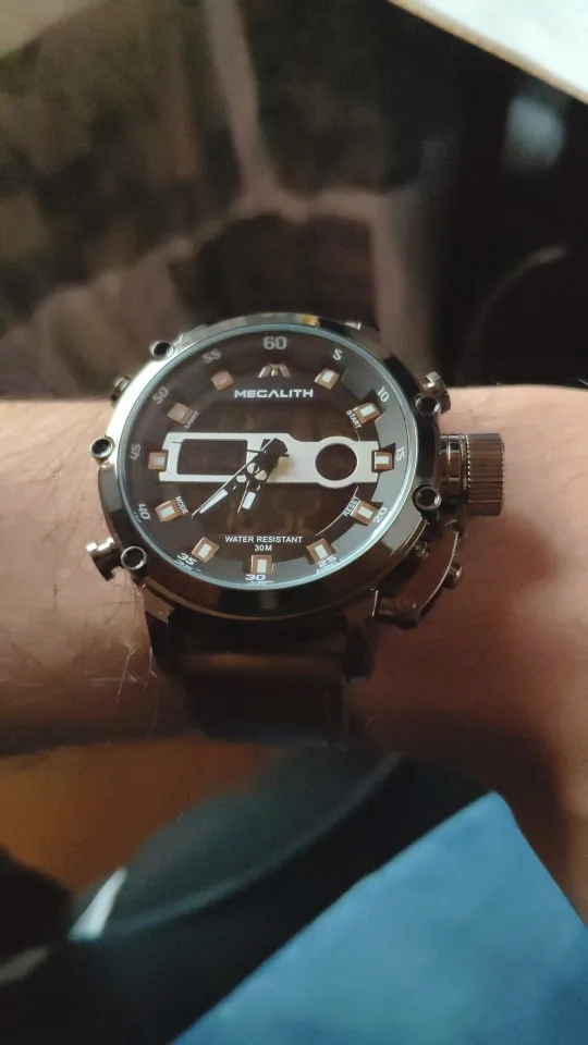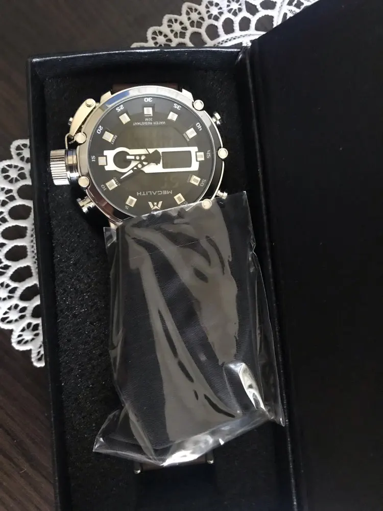 Часы получил довольно быстро. Выглядят на 5 из 5. Стрелки и цифры в темноте светятся. Экран при нажатии кнопки "Подсветка" подсвечивается. С будильником не разобрался- либо я чего то не понимаю, либо есть косяк. Но лично мне это не критично. В дальнейшем надеюсь разберусь. Ремешок на мой взгляд хлипковат для таких котлов. Не в плане надежности-тут сомнений нет, что крепкий, а в плане визуальных пропорций. Котлы большие, а ремешок тонкий и узковат. В дальнейшем наверное поменяю на какой нибудь более солидный, может быть из паракорда. Обещанной коробки не было- часы были упакованы в пакет и в сумочку. В комплекте салфетка для чистки. На экране часов написано водостойкие до 30 метров глубины .Но в паспорте указано, что выдерживают только пот и капли дождя. Нельзя погружать в воду , принимать в них душ и плавать. В принципе от часов за такую стоимость я другого и не ждал. В общем покупкой доволен.