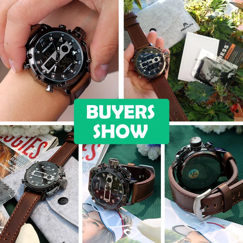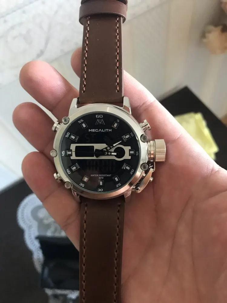 MEGALITH мужские спортивные кварцевые часы, мужские многофункциональные водонепроницаемые светящиеся наручные часы, мужские двойные часы, Horloges Mannen с коробкой