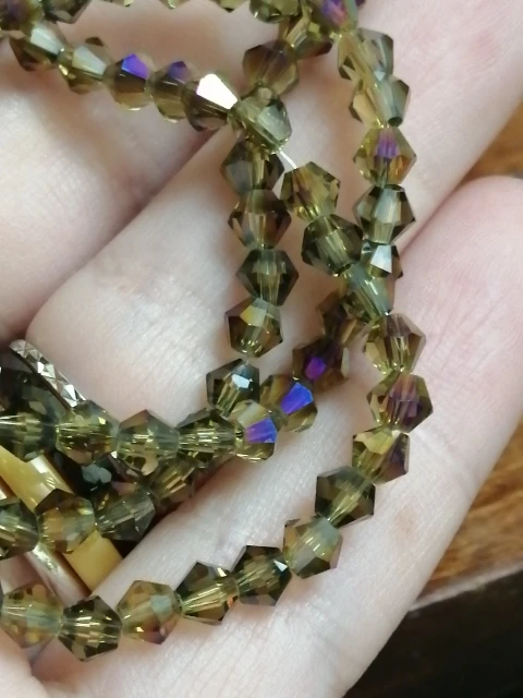Очень красивые биконусы. Заказывала размер 4мм. То что надо. Продавец в подарок положил швензы и монетки для серег. Очень довольна. Рекомендую. С продавцом не общалась.