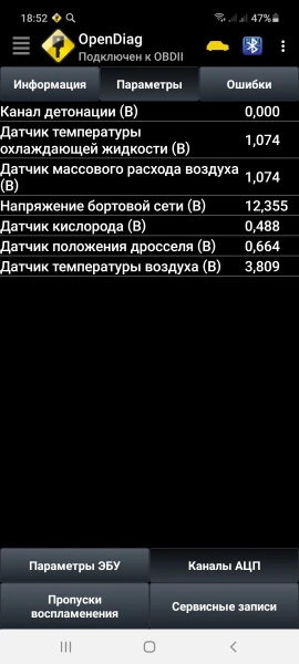 пока нормально работает показания на заглушеном двигателе 0.977 в