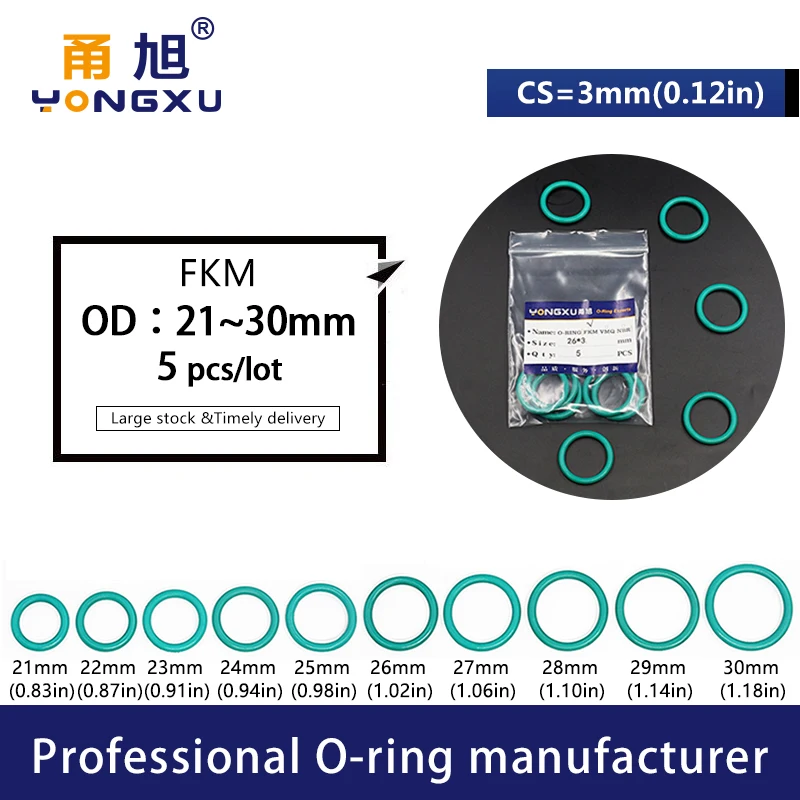 5 шт.лот уплотнительные кольца зеленого цвета FKM CS3mm OD21222324252627282930*3 мм уплотнительные прокладки