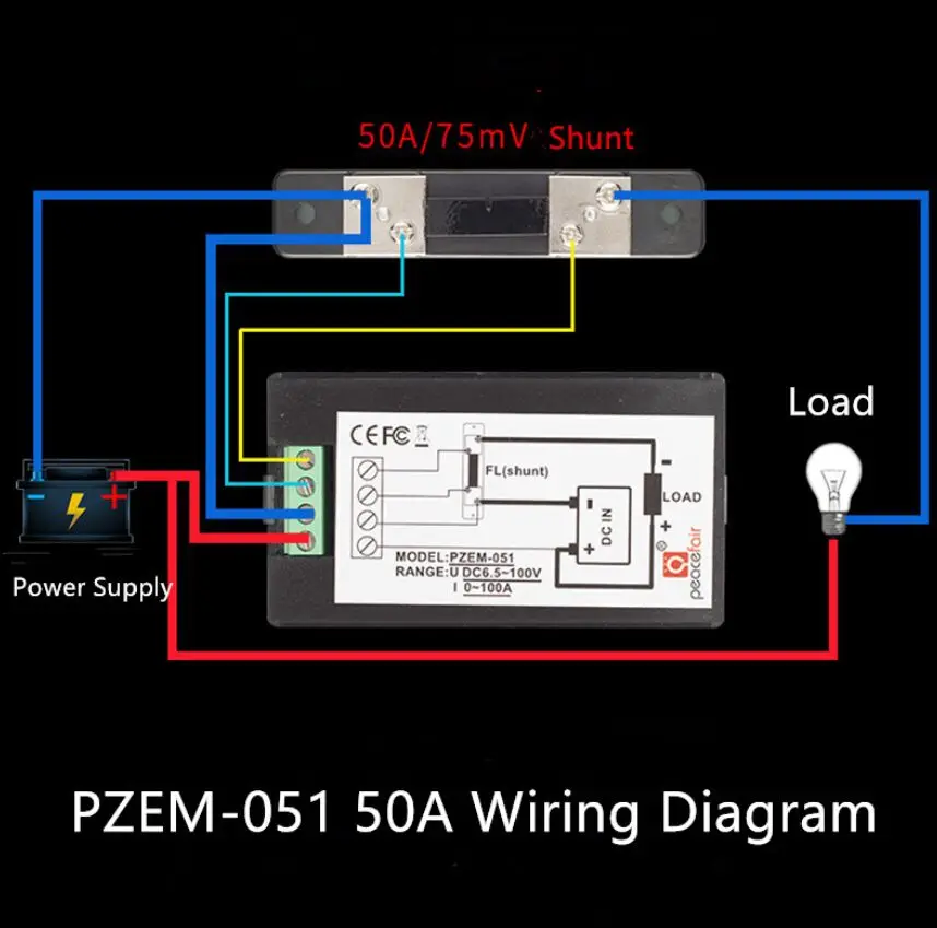 Этот измерительный PZEM-051 может сочетаться с 50A и 100A шунтом.