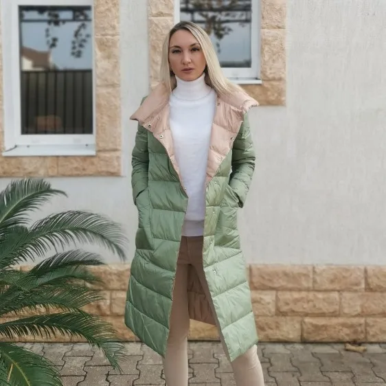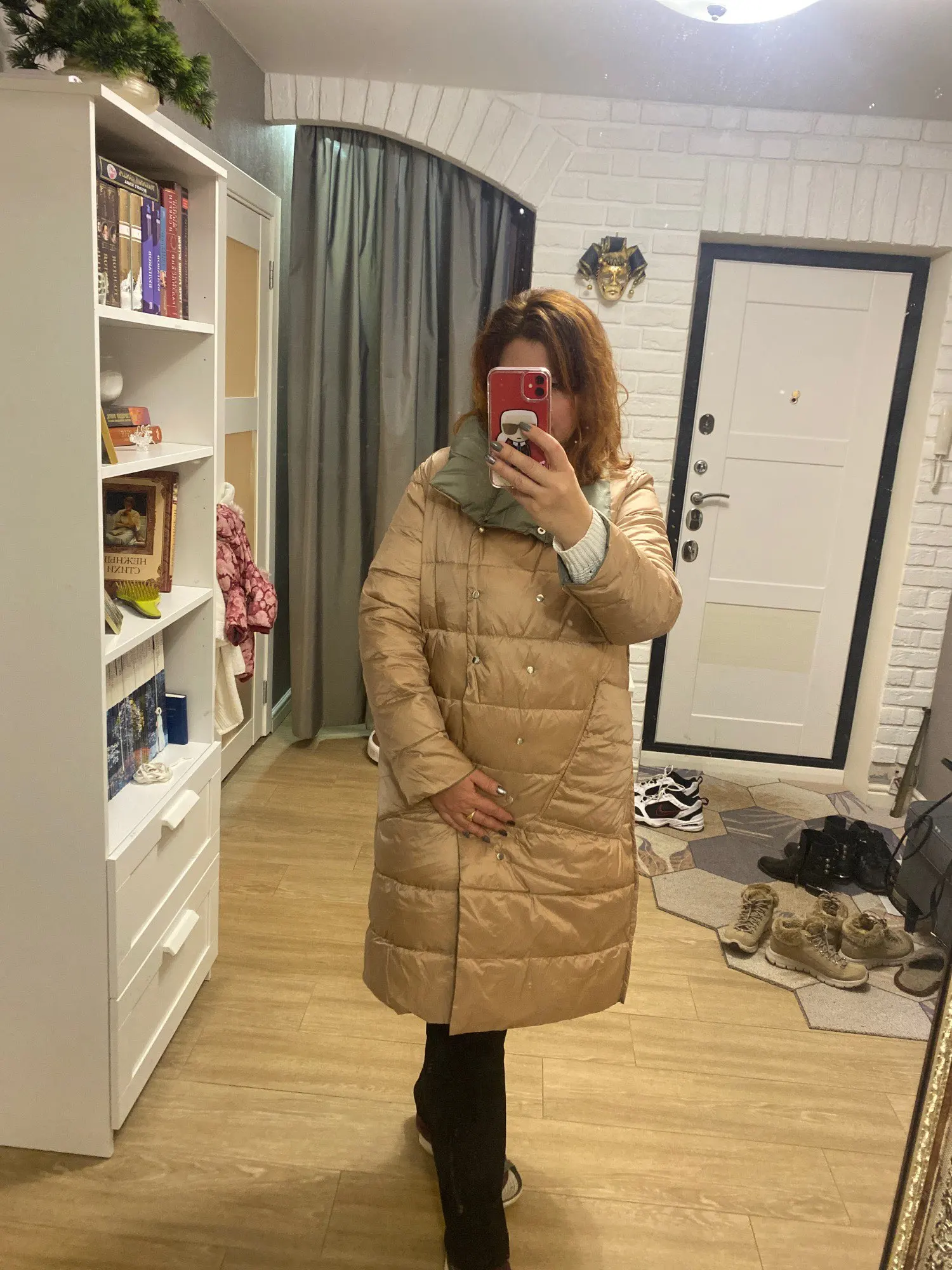 Первый опыт на Али,Доставка 7 дней, на русский ХL взяла по отзывам 3xl, рост 165 длина идеально подошла, бежевая сторона- бежевая! На многих фото в отзывах выглядит с оттенком розового, но нет! Красивый беж!носить можно на обе стороны, в общем приятно удивлена за 2к два пуховика)) магазин супер,принимайте заказы от моих друзей!))