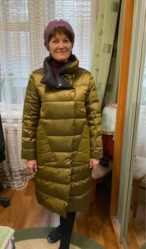 Очень обидно, что пальто мне не подошло. У меня рост 160 см. Рукава короткие, длина чуть ниже колен. Вероятно, пальто рассчитано на низкий рост. Ношу верхнюю одежду российский 48 р. Но сейчас перезаказала на больший размер.