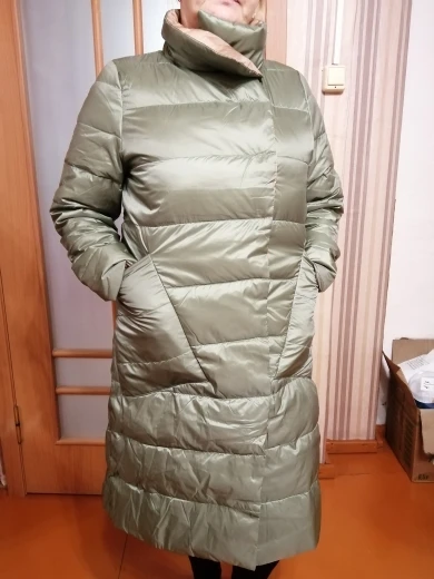 Доставка быстрая; это теперь мой любимый пуховичок- сейчас погода около нуля , и он как раз на эту температуру: лёгкий совсем невесомый, но ветер его не продувает, цвет молочно-светло-зелёный получился благородный, думаю о том, чтобы приобрести такой же в белом цвете. Спасибо продавцу за пуховик и всем , кто оставляет отзывы с параметрами и размерами- покупала по отзывам на 110-100-110 отлично подошёл 5XL.