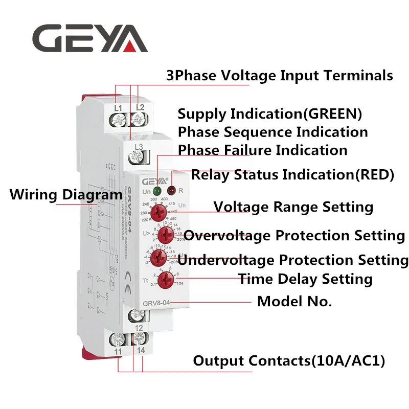 Реле GEYA GRV8-04, 3-фазное реле контроля напряжения с защитой фаз, временем задержки перенапряжения и реле напряжения реле пониженного напряжения, Din-рейка