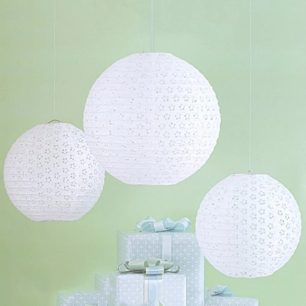 ● В этих фонариках есть бумага ручной работы с цветочными вырезами на каждом фонаре. Перфорированные люверсы отбрасывают большие тени, похожие на фонарики в виде звезд. Открытые с проволочным расширителем.