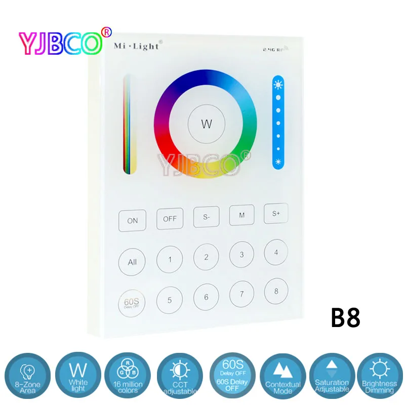 Miboxer 2,4G беспроводной пульт дистанционного управления 8 Zone FUT089; B8 настенная сенсорная панель; LS2 5IN 1 Умный светодиодный контроллер для RGB + CCT Светодиодная лента