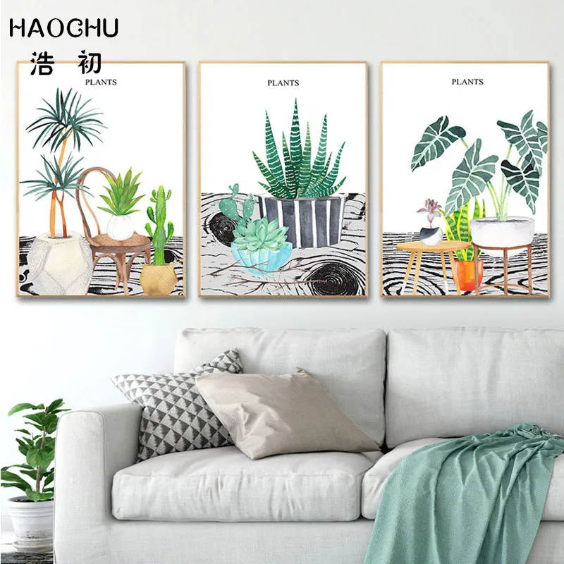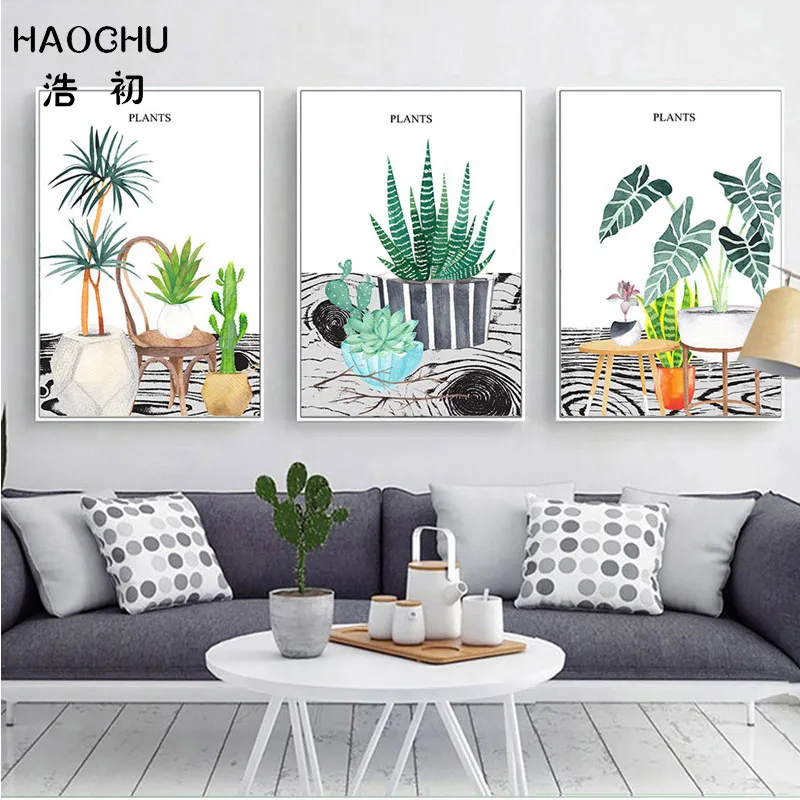 HAOCHU Скандинавская свежая зеленая Растительная живопись на холсте с алоэ для коридора спальни настенный Декор картина настенные стикеры Художественная печать плакаты