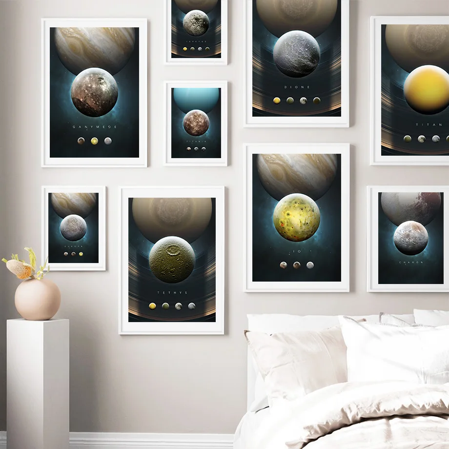 Настенная картина Uranus с изображением планеты, спутника, солнечной системы, настенная Картина на холсте, скандинавские плакаты и принты, настенные картины для декора гостиной