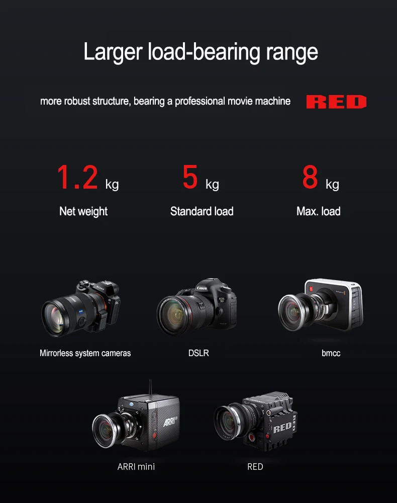 Особенность-длина слайдера 13 дюймов (33 см),21 дюйм (54 см) рельс движения камеры-переноска только наиболее часто используемая часть вашего слайдера-макро-точная гладкая камера движения-мини портативный, хороший помощник для туристической съемки-максимум 17,6 фунтов (8 кг) грузоподъемность. Жесткая как кирпич. Параметр чистая Вес: 2,65 фунтов (1,2 кг) Максимальная нагрузка: 17,6 фунтов (8 кг) Высота подъема: 3/8 "-16 Монтажный винт сверху 3/8"-16 монтажный порт на нижней камере путешествия: 21 дюймов (54 см) подшипник: 36 шт. материалы: CNC обработанный алюминий Micro 2 Стандартная посылка 1 x Micro 2 слайдер 1 x ключ для настройки гитары 1 x сумка для переноски 1 x Инструкции