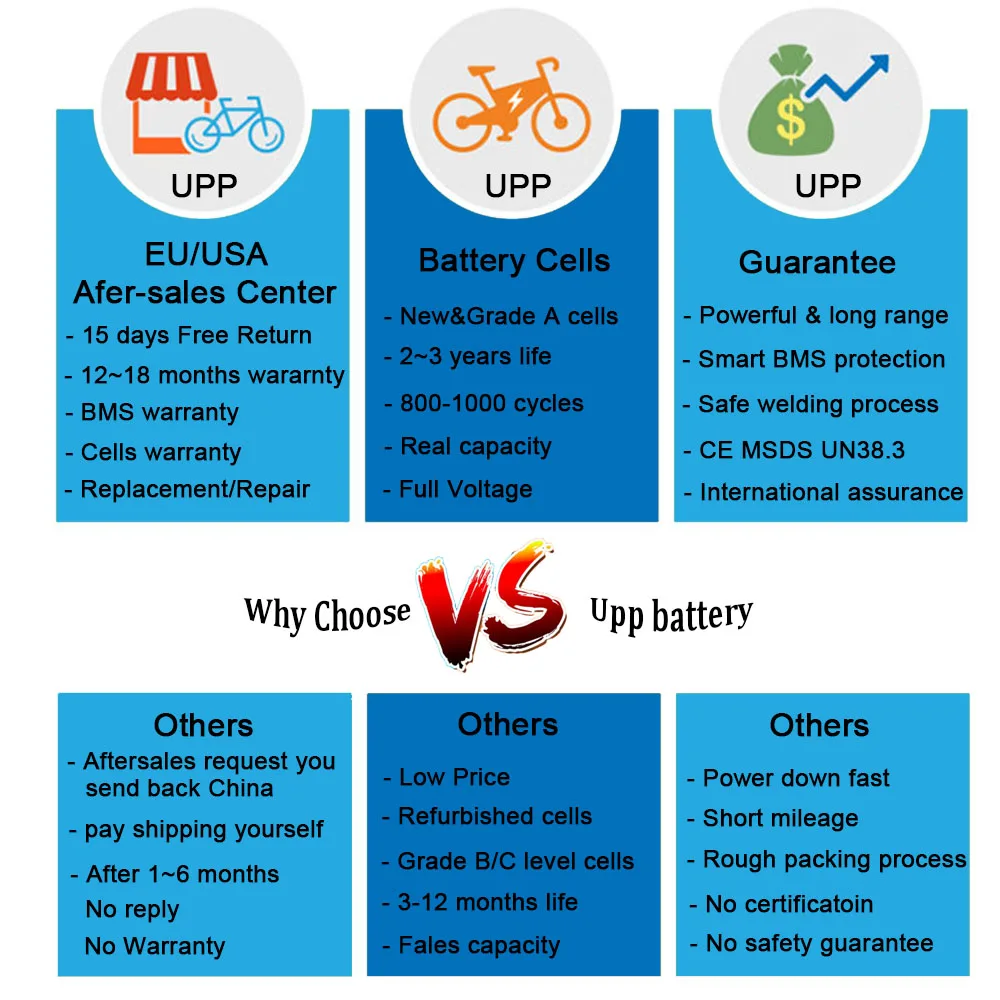 Это действительно зависит от приложения и может быть трудным вопросом. Сначала вам нужно получить напряжение батареи в соответствии с вашим запросом двигателя, затем емкость, высокая емкость может сделать ваш велосипед более продолжительным, но более дорогим, также необходимо выбрать правильный Ампер BMS, чтобы соответствовать вашему двигателю. Проведите исследование, если это ваш первый набор ebike, чтобы убедиться, что вы получаете правильный аккумулятор для ваших потребностей.