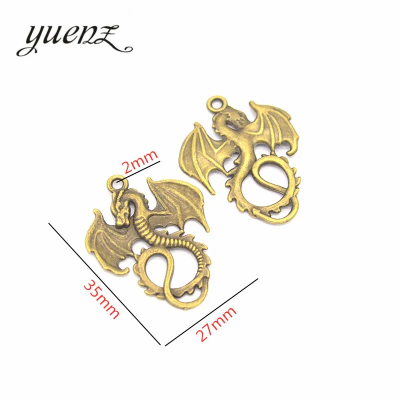 YuenZ 10 шт., античные, серебристые, бронзовые, золотого цвета, сплав, талисман дракон, подходят для браслетов, ожерелий, ювелирных изделий своими руками, 35*27 мм, D802