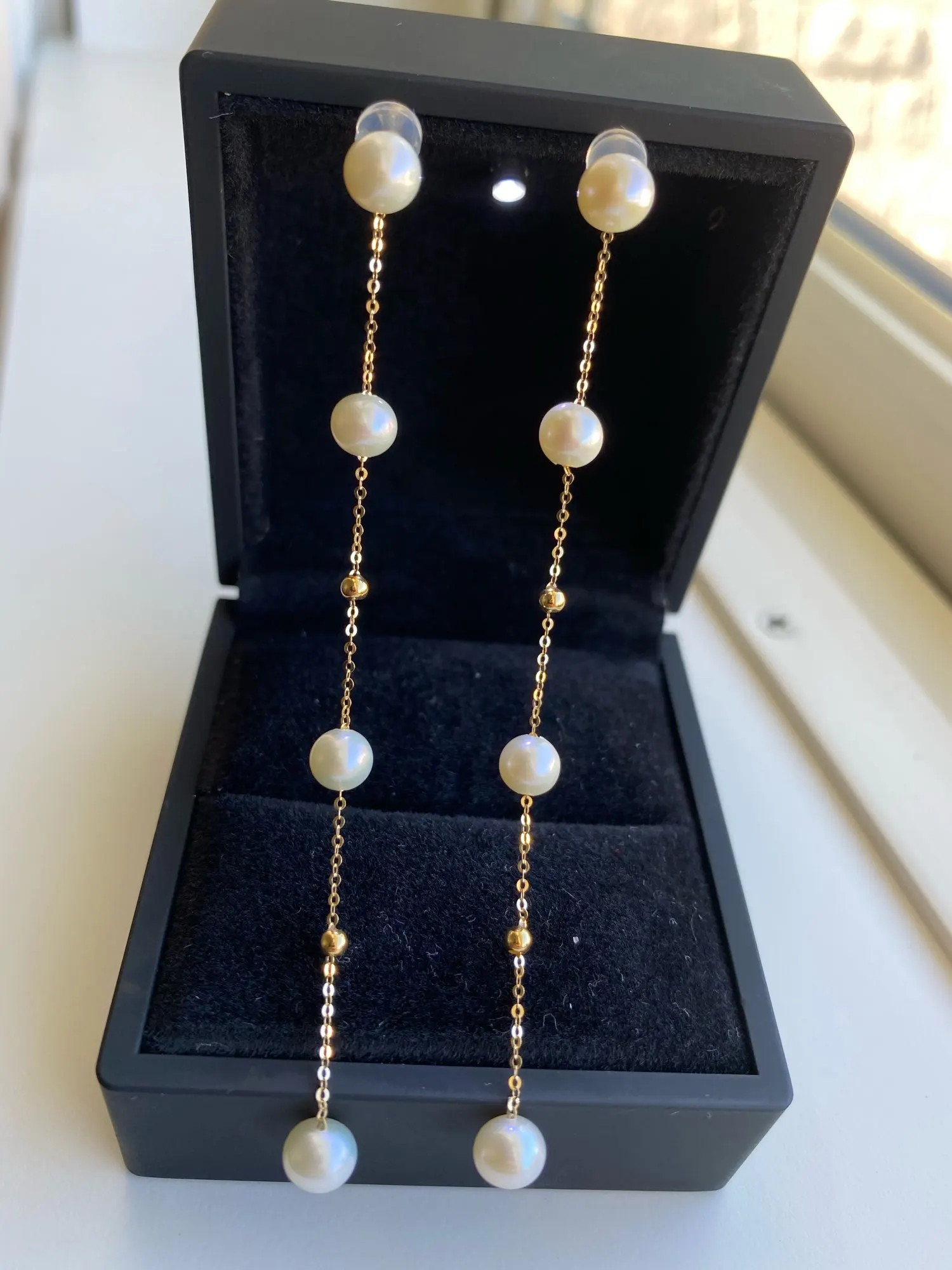 YS 18K Настоящее Желтое золото висячие серьги с натуральным культивированным пресноводным жемчугом маленькие золотые серьги-шарики ювелирные украшения для невесты