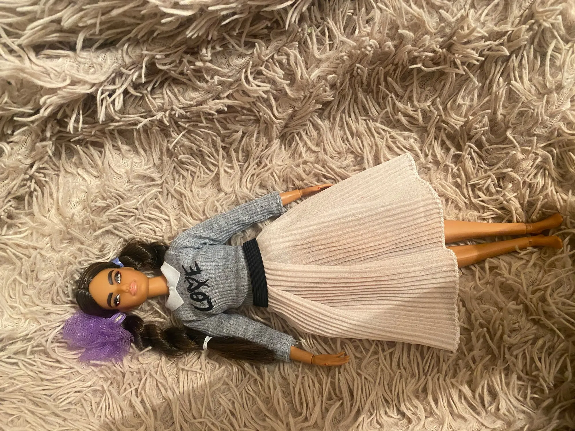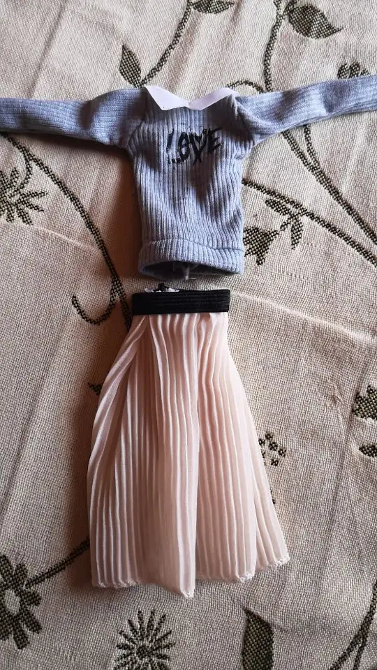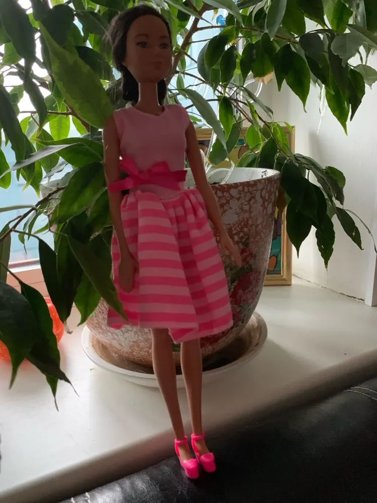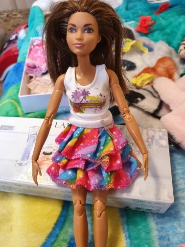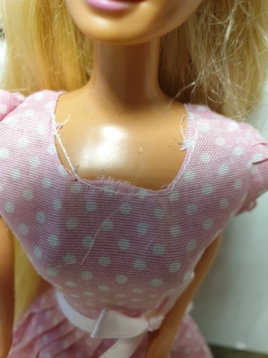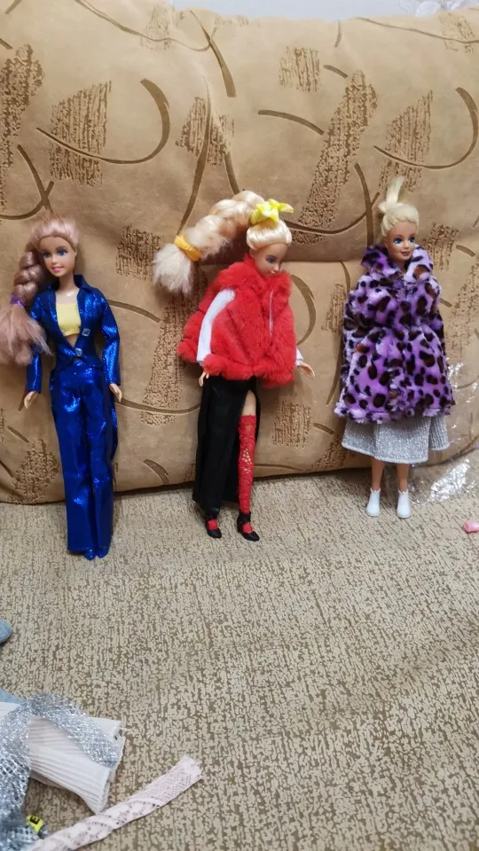 Славный наряд, ребёнок доволен, наряжает своих кукол Барби. Наряд только для худых Барби. Нитки торчали, обрезали- все нормально