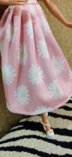 Платье симпатичное, но не очень качественное. Хотя за такую цену норм. Ворот прошит абы как. Не до конца застегивается на Барби 90-х. Цвет платья на фото продавца более яркий. Матриал жёсткий. Товар был отправлен сразу же после оплаты, отслеживался на всем пути. Продавца рекомендую. Платье, в принципе, тоже.