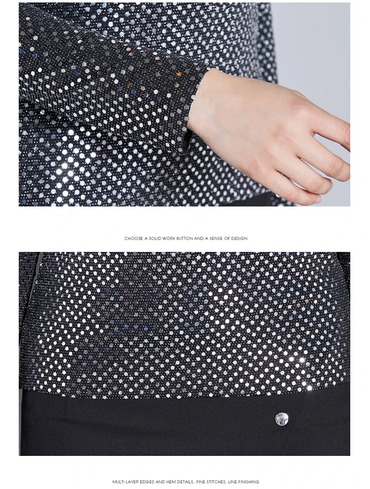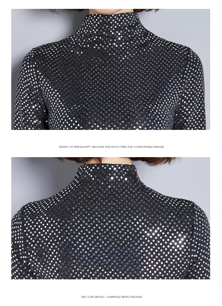 с длинными рукавами, модная повседневная рубашка, плюс размер 3XL Весна 2019, новые женские блузки, получерепаха, шеи, модные, расшитые блестками 314B3