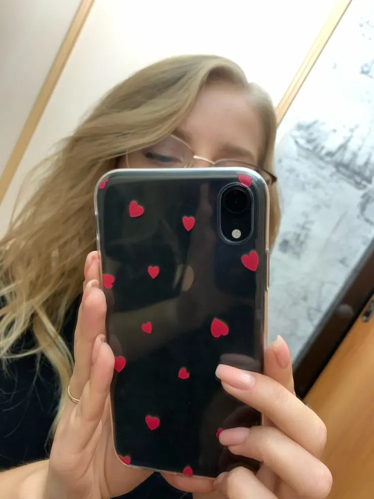 Чехол обычный силиконовый, сердечки шершавые, нарисованы прям на нем