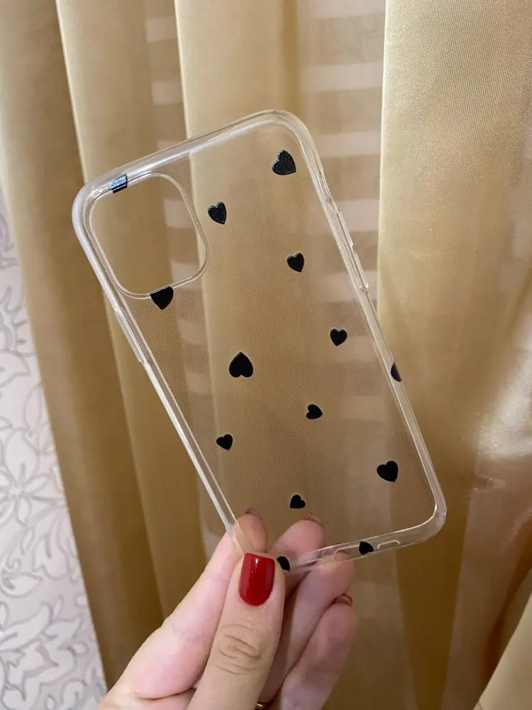 Силиконовый чехол для iPhone 12 mini, 1112 Pro Max, X, XS Max, XR, SE, 8766S Plus, 5, 5S, прозрачный, с сердечкамив горошек
