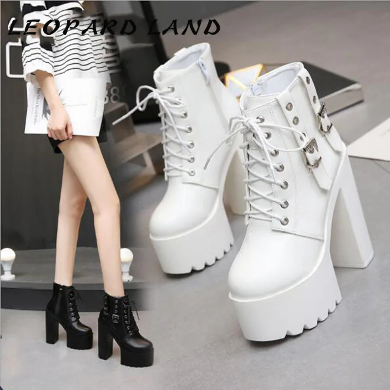 Женские ботильоны LEOPARD LAND, черные и белые ботинки на очень высоком квадратном каблуке 2021 см, на молнии, с заклепками, пикантные женские ботинки ZYW, 14,5