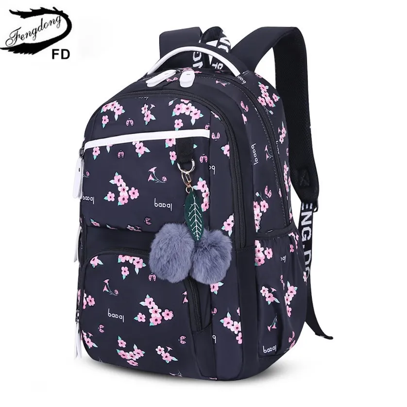 Рюкзак для девочек Fengdong, школьный рюкзак для девочек-подростков, украшенный меховыми шариками, в Корейском стиле