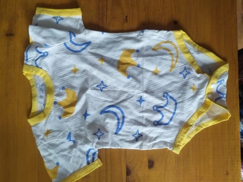 Хорошенькое боди. Не просвечивается. Бирок нет, информации о составе тоже, но похоже на хлопок. Рисунок нанесён не напрямую на ткань, а как термонаклейка. Швы все внутри, аккуратные. Заклёпки металлические все работают. Брала в размере 3М - бодик поменьше, чем боди от других продавцов в размере 3М (70) Замеры: Длина по спинке 37,5 см Ширина 22,5 см Посылка пришла за 1,5 месяца.