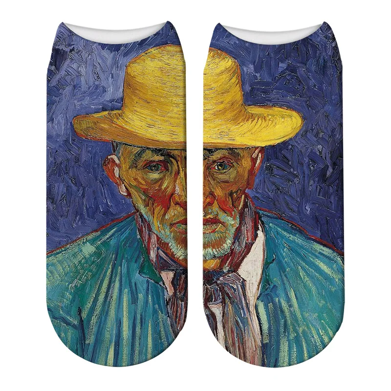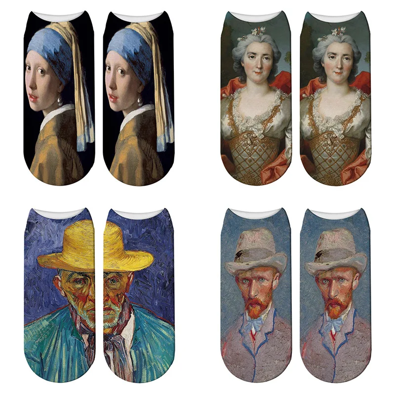 Новые масляные эластичные носки с 3D принтом, женские носки в стиле ретро с рисунком Ван Гога, росписью маслом, всемирно известные мужские Смешные счастливые носки
