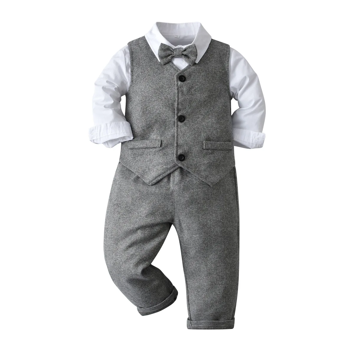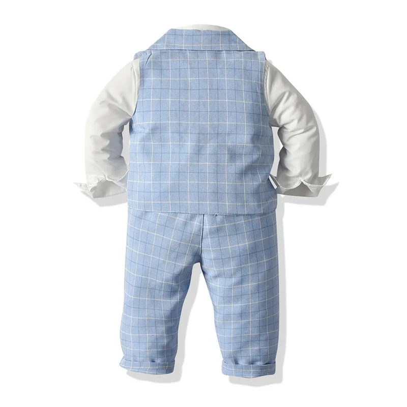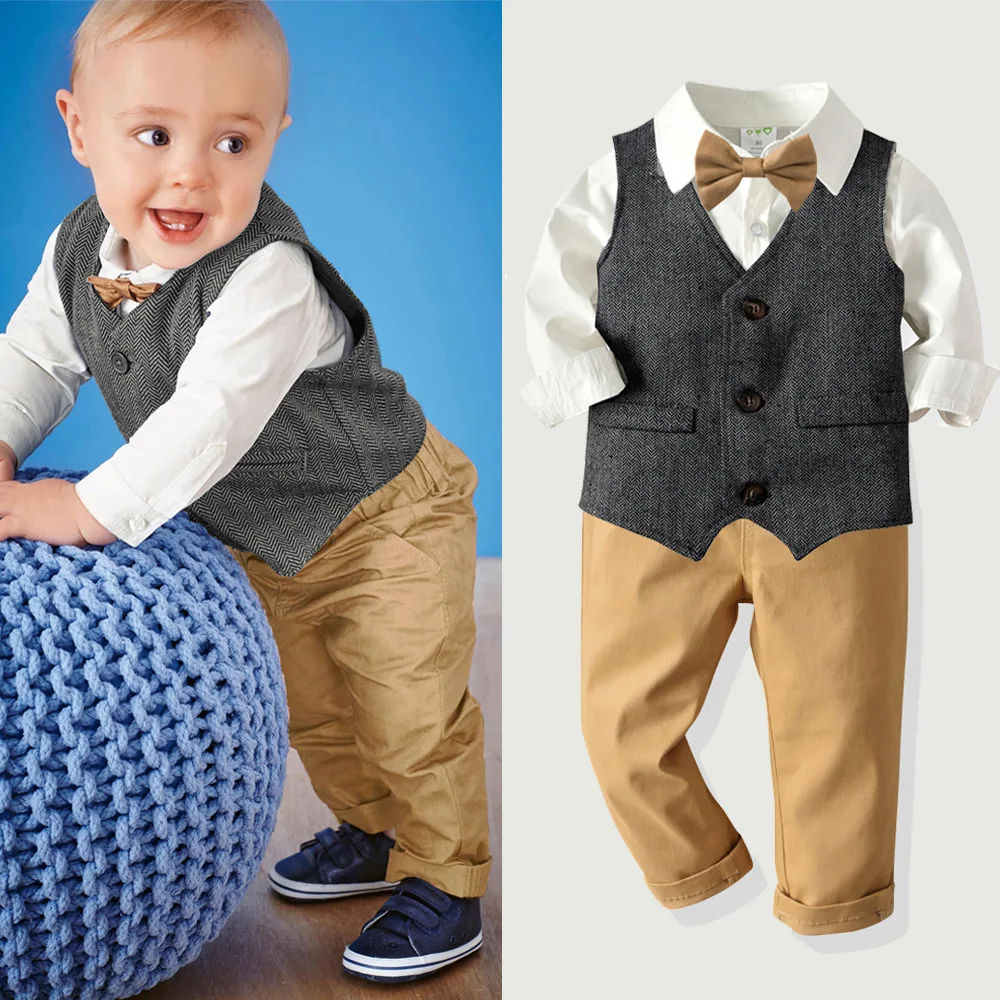 Одежда для маленьких мальчиков костюм джентльмена на день рождения на весну и осень праздвечерние чное платье для новорожденных мягкий хлопковый жилет + рубашка + штаны, 4-шт