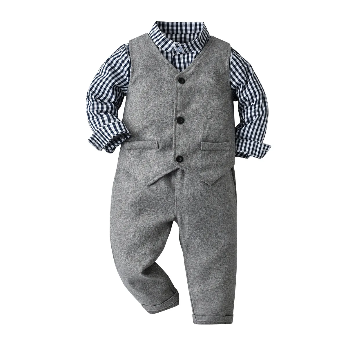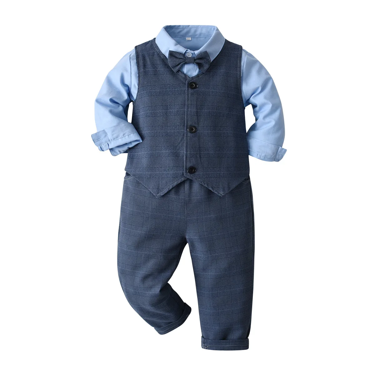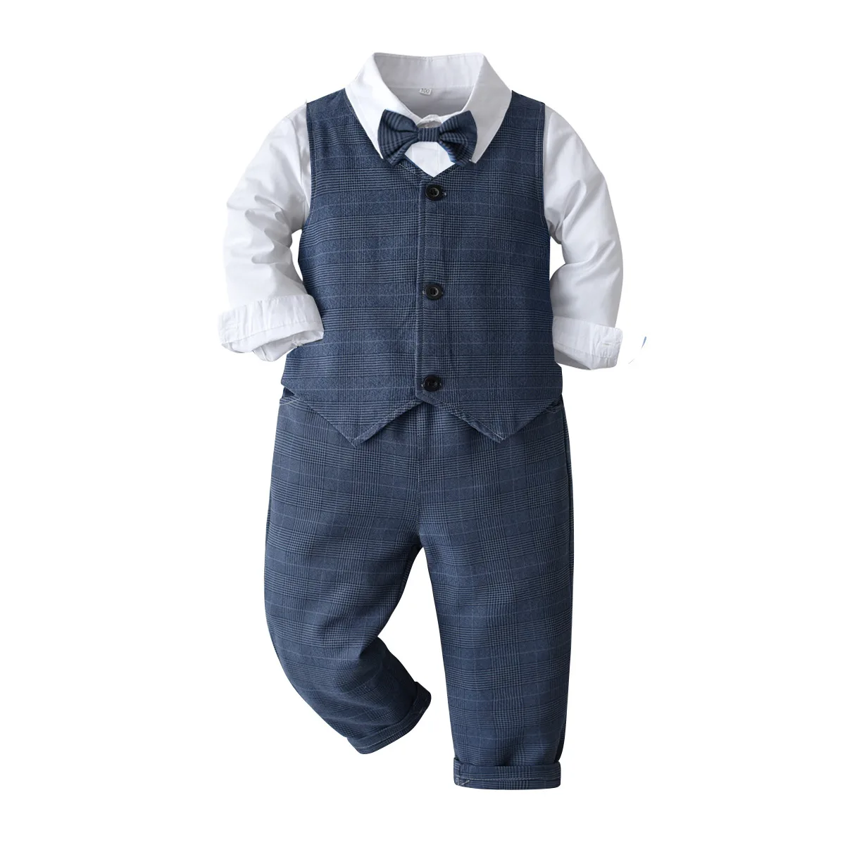 Одежда для маленьких мальчиков костюм джентльмена на день рождения на весну и осень праздвечерние чное платье для новорожденных мягкий хлопковый жилет + рубашка + штаны, 4-шт