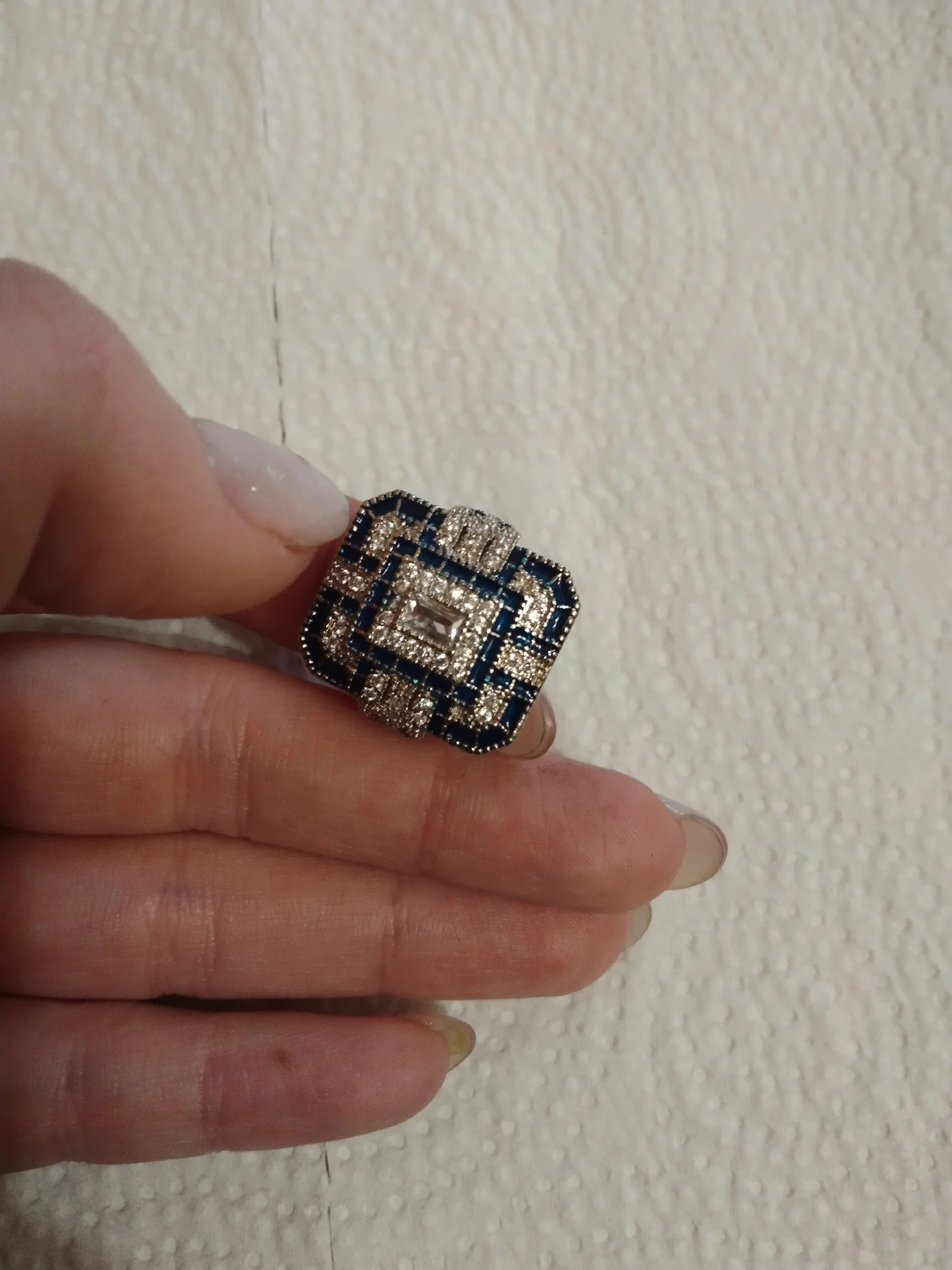 Женское кольцо в стиле ретро, квадратная форма, кольцо из белого и синего циркония, классические украшения для свадьбы и помолвки