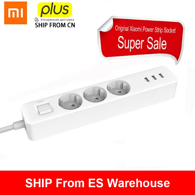 Новое поступление оригинальный Xiaomi Mijia Power Socket Strip 3 Socket 3 USB port Big Plug Extension Patch Board для домашнего офиса Global