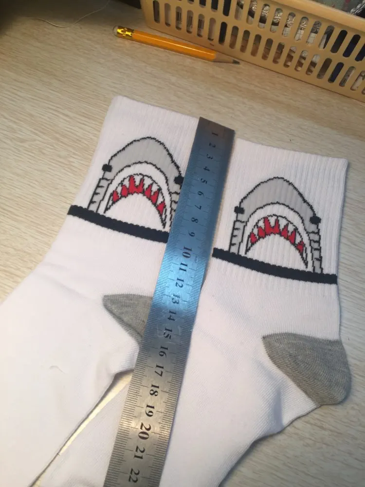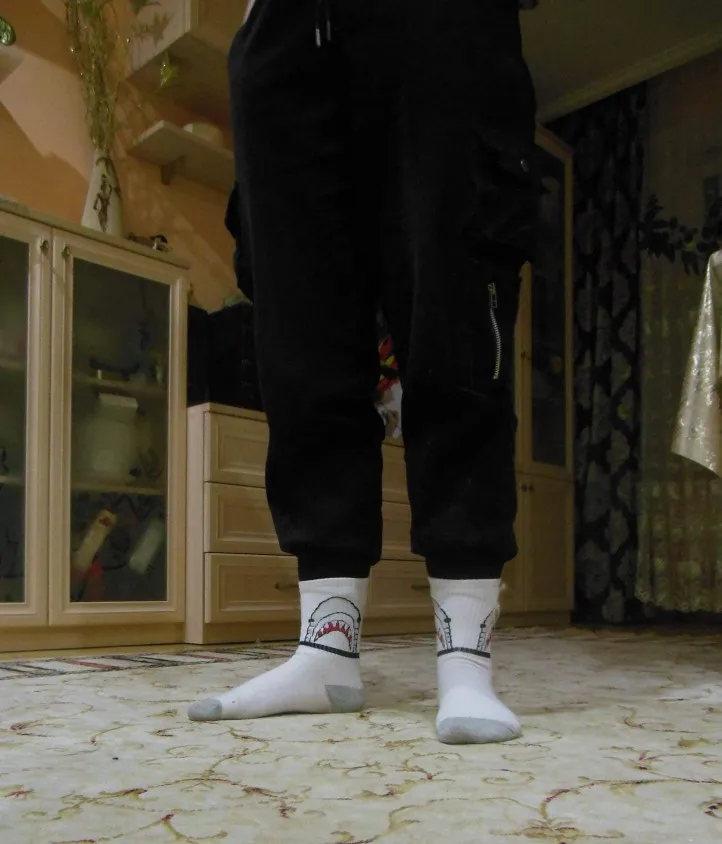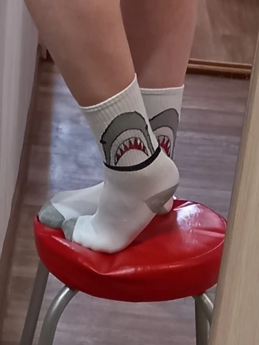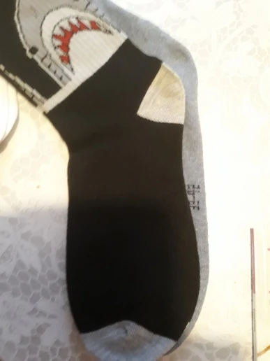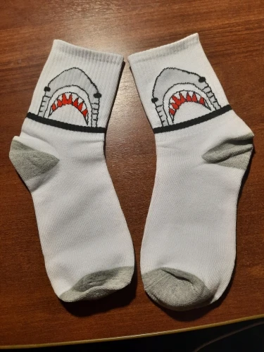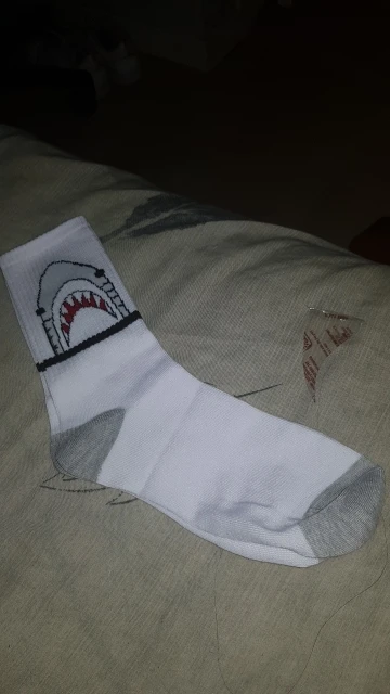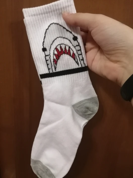 носки хорошие, покупала в подарок. картинка хорошая, правда на ноге деформируется и акула превращается в серую лепёшку)