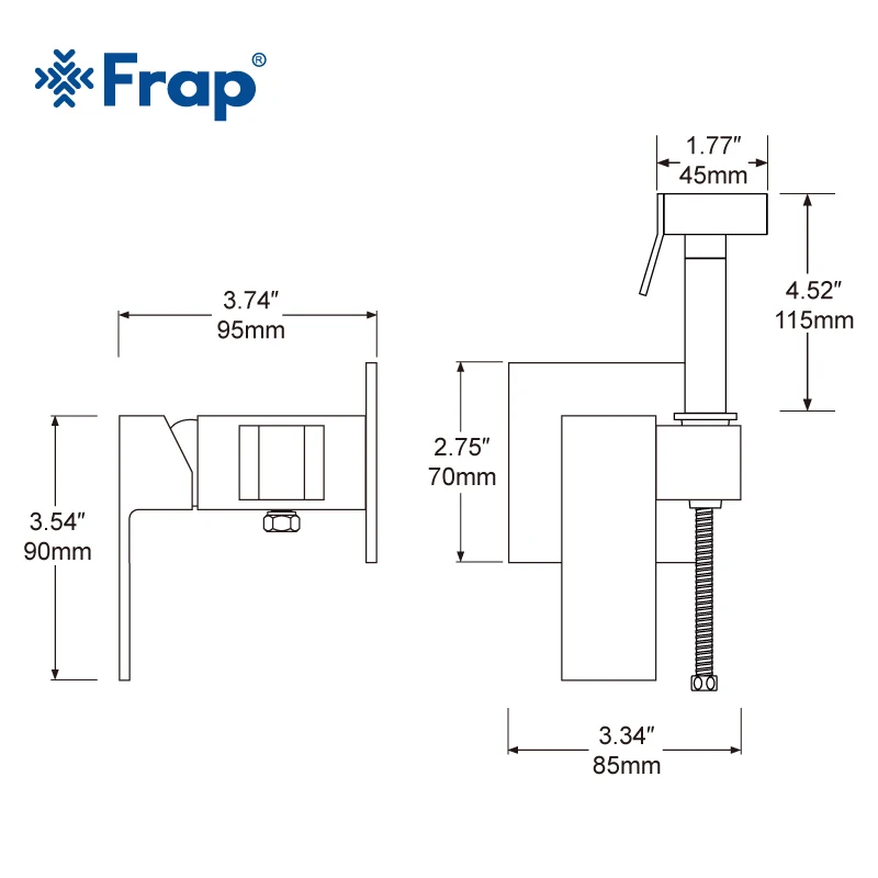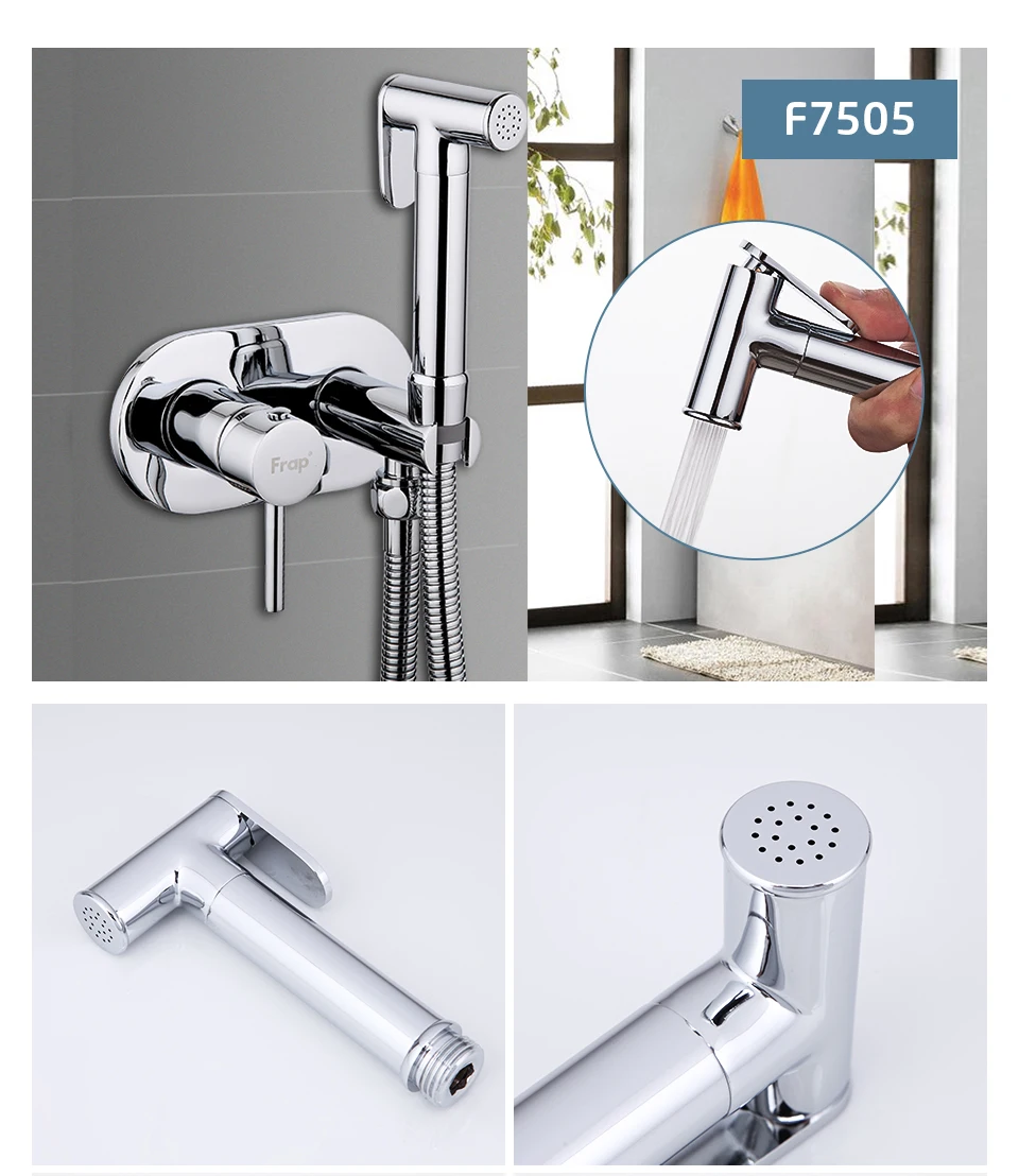 Смеситель для унитаза FRAP, хромированный, настенный, гигиенический