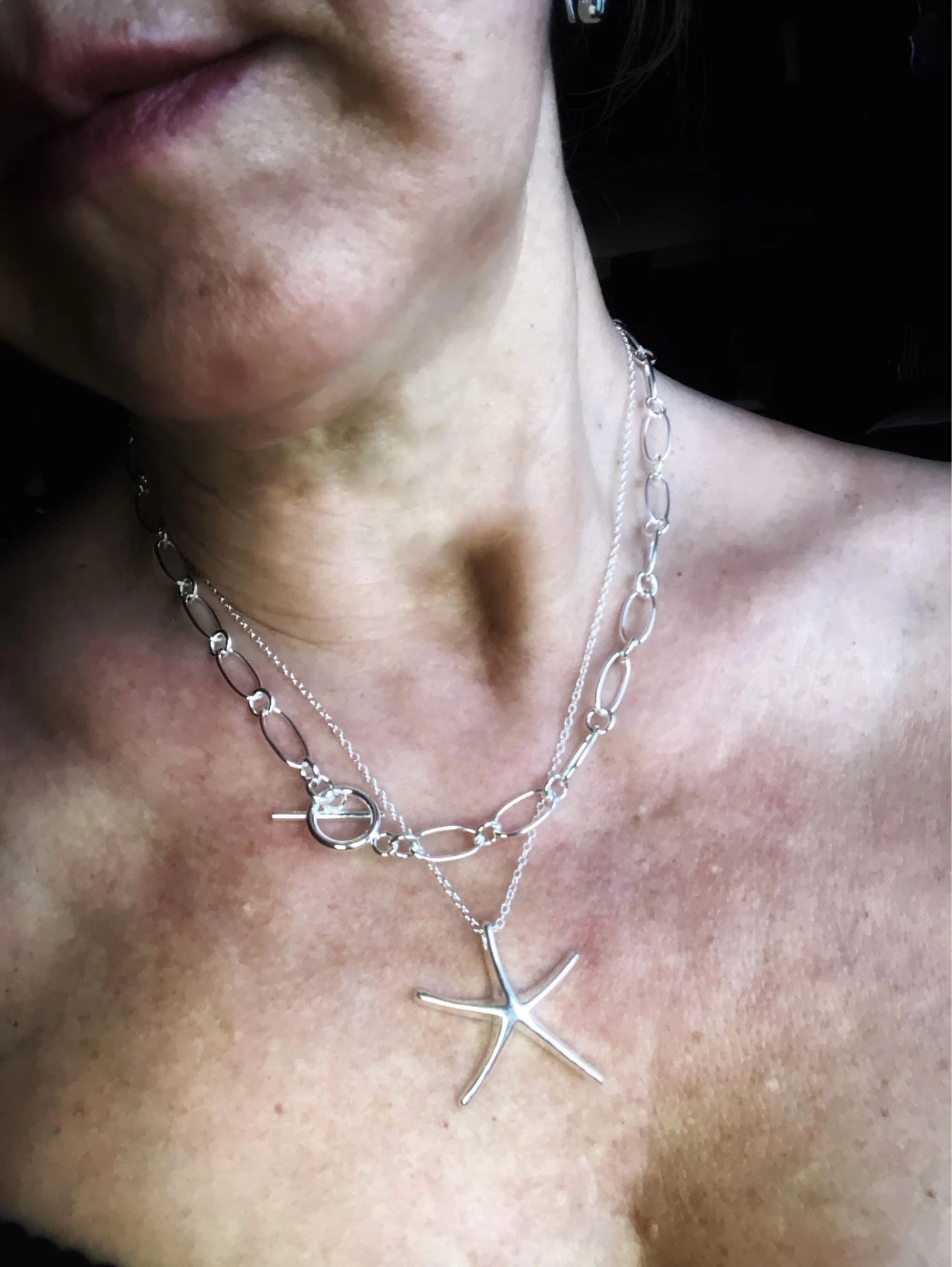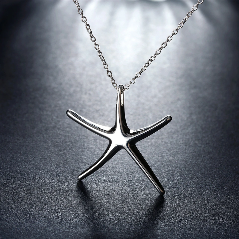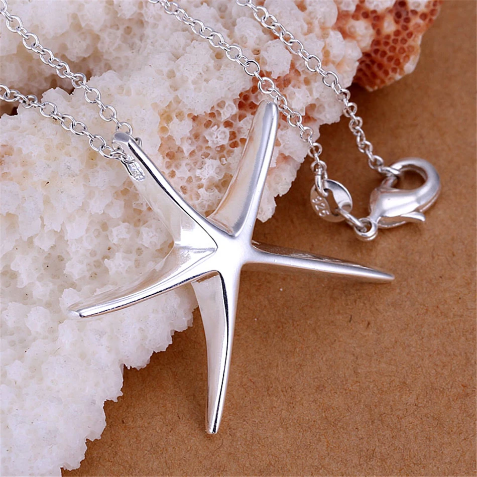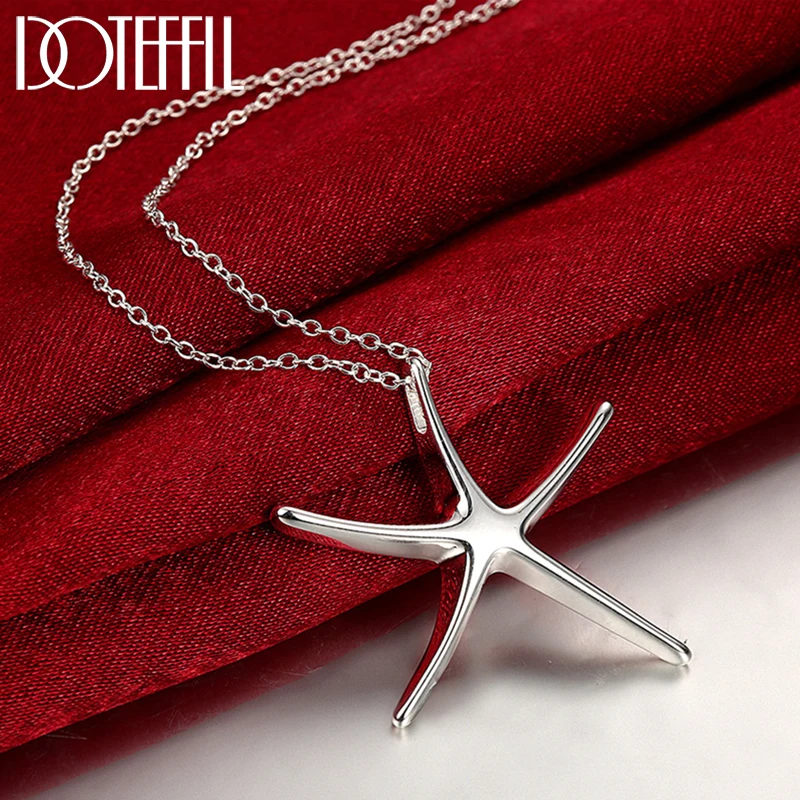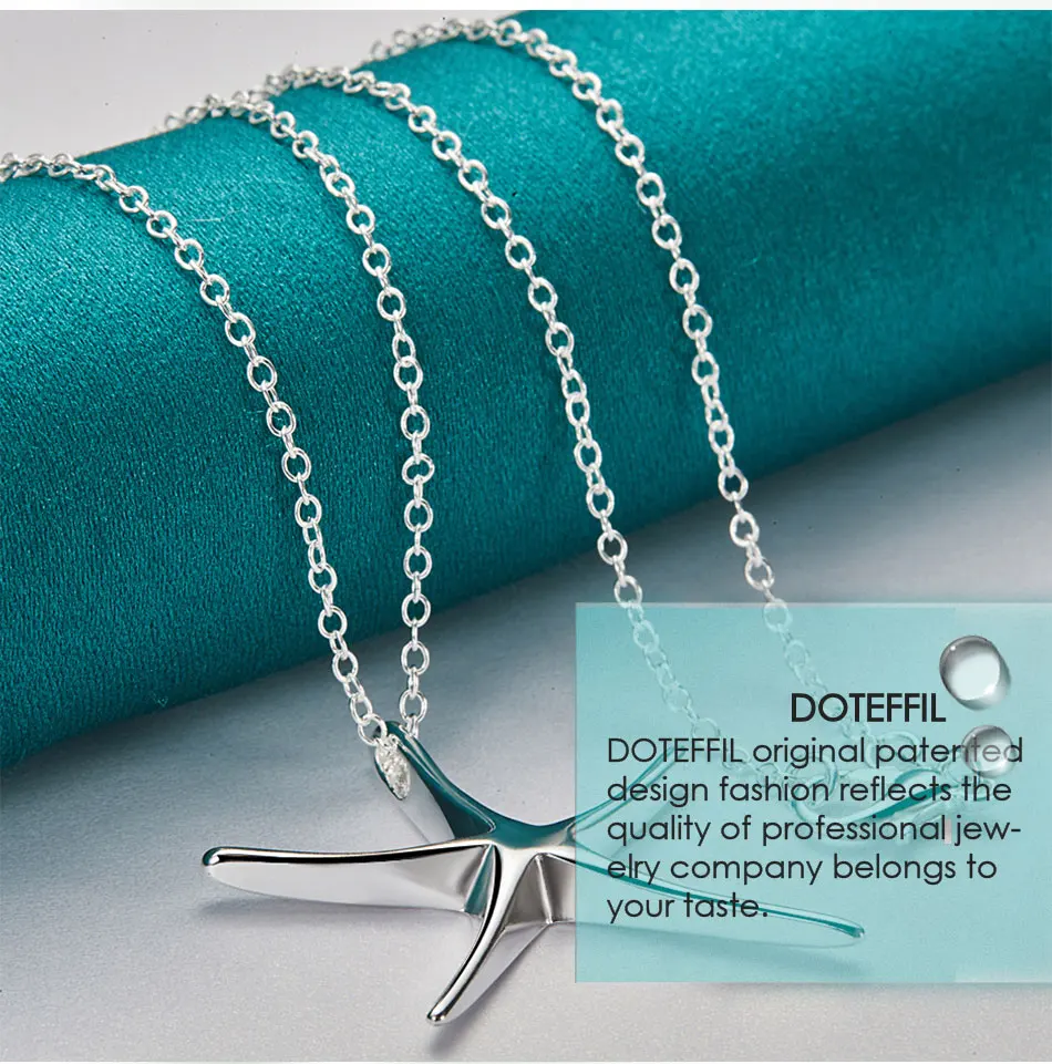 Цепочка DOTEFFIL из серебра 925 пробы, 18 дюймов, кулон в виде морской звезды для женщин, ювелирные изделия для помолвки на свадьбу, подарок