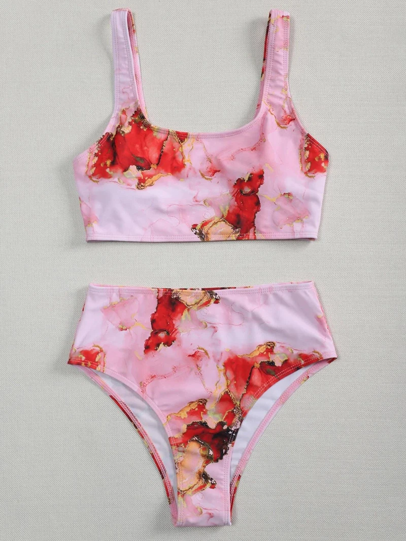 Женский комплект бикини, Желтый Купальник бандо с высокой талией, бикини с сексуальным принтом, купальный костюм из двух частей, купальный костюм, 2022