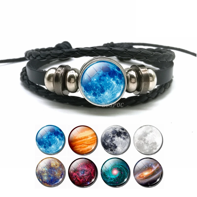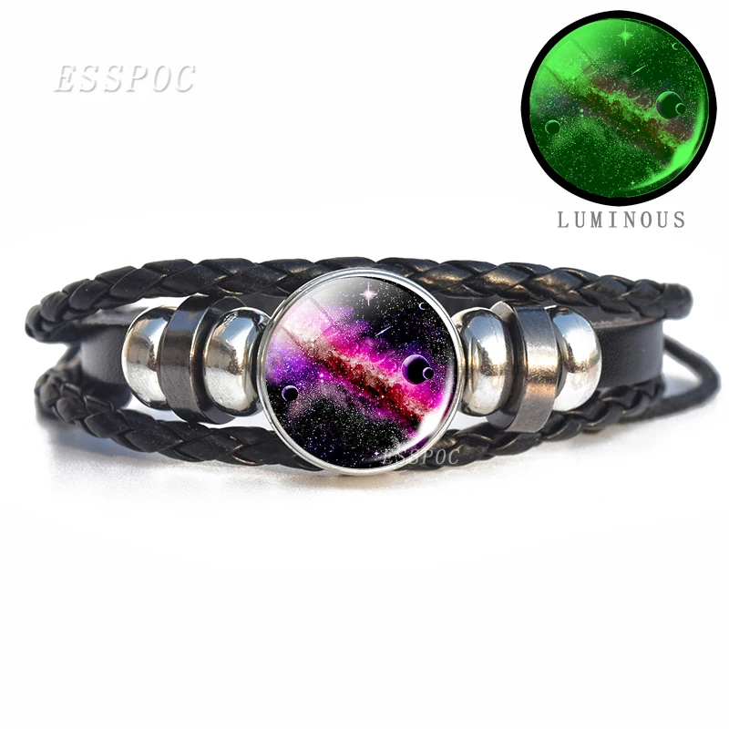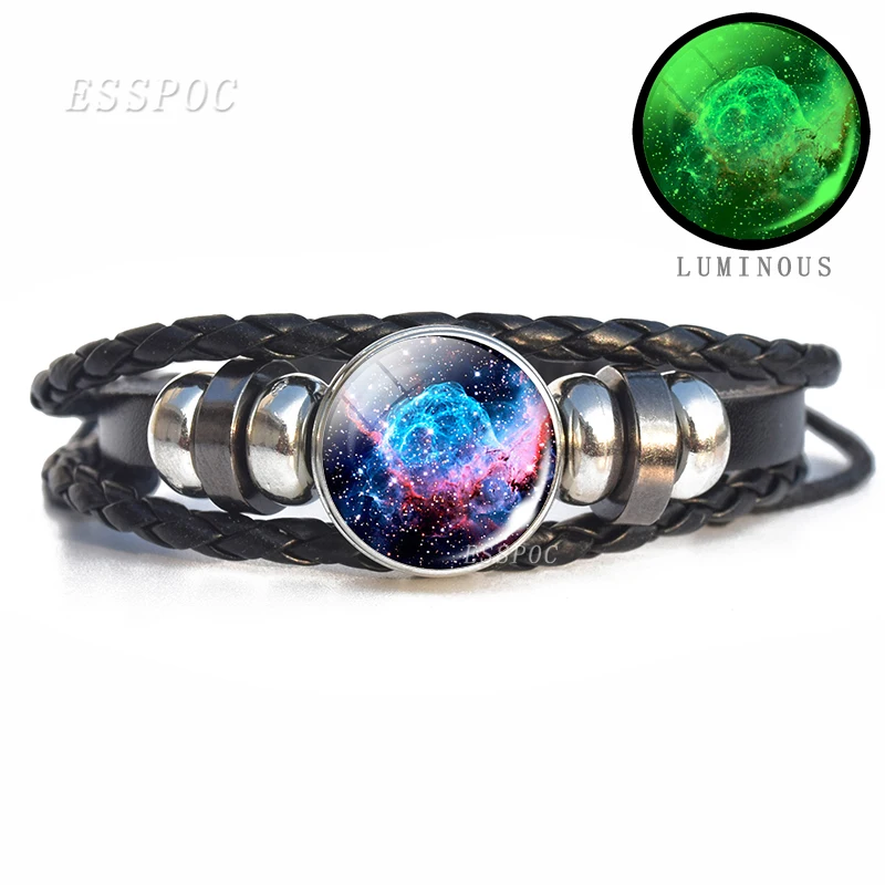 Подвеска светящийся браслет галактика светящийся в темноте полная луна стекло кабошон ведро плетеный браслет мужской подарок на день Святого Валентина Прямая поставка