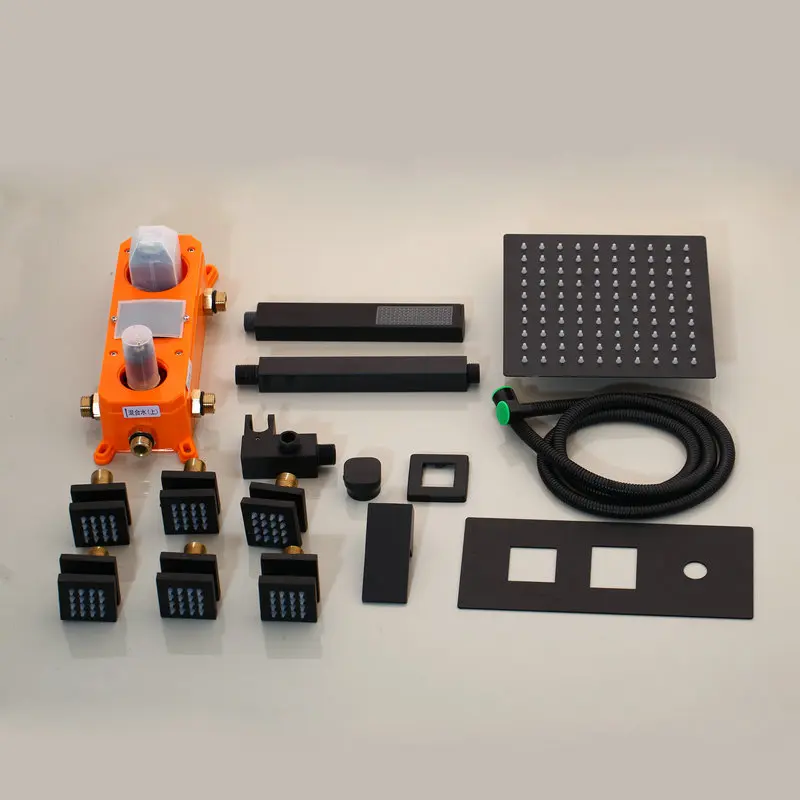 1 × ультра-тонкая душевая головка с душевой рукояткой 1 × Многофункциональный сплошной латунный регулирующий клапан 6 сообщенийСтруиЛатунный ручной душ с пластиковым крючком и выходом В комплекте со всеми установочными аксессуарами